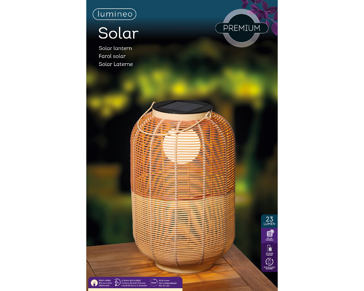 Herstellerinformationen zu "LED Solar Laterne, künstliche Korbweide orangebraun-beige, 43cm, Outdoor, Lumineo"