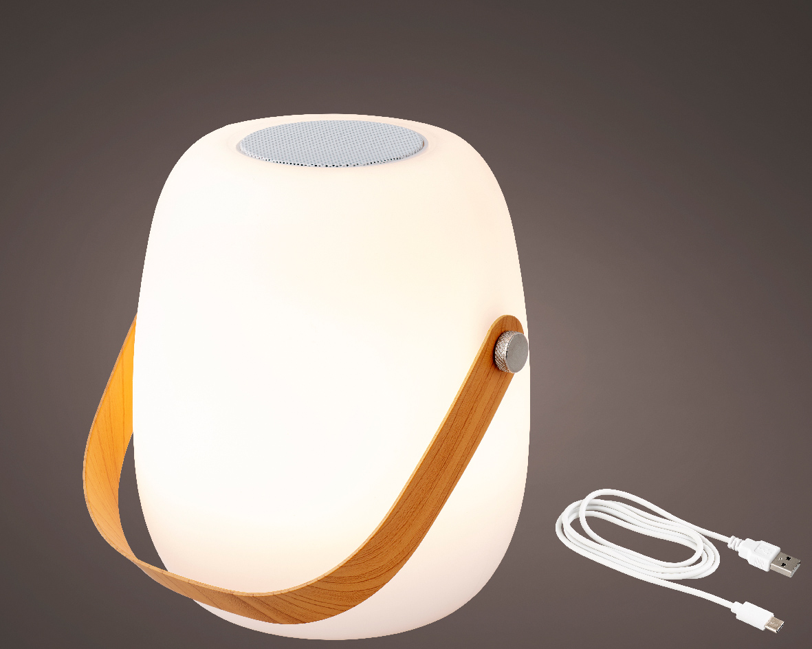 Produktinformationen "LED Tischleuchte mit Lautsprecher, Gartenlicht aufladbar, warmes weiß, outdoorgeeignet, 14x21cm"
