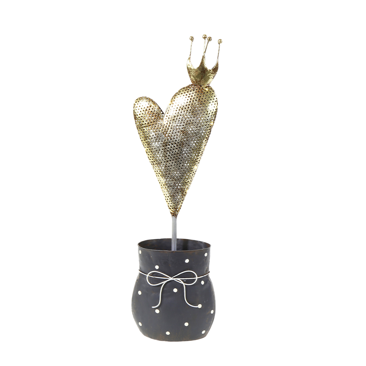 LED Weihnachtsgeschenk Herz, Metallherz, Herz im Topf schwarz-gold, 19x60cm