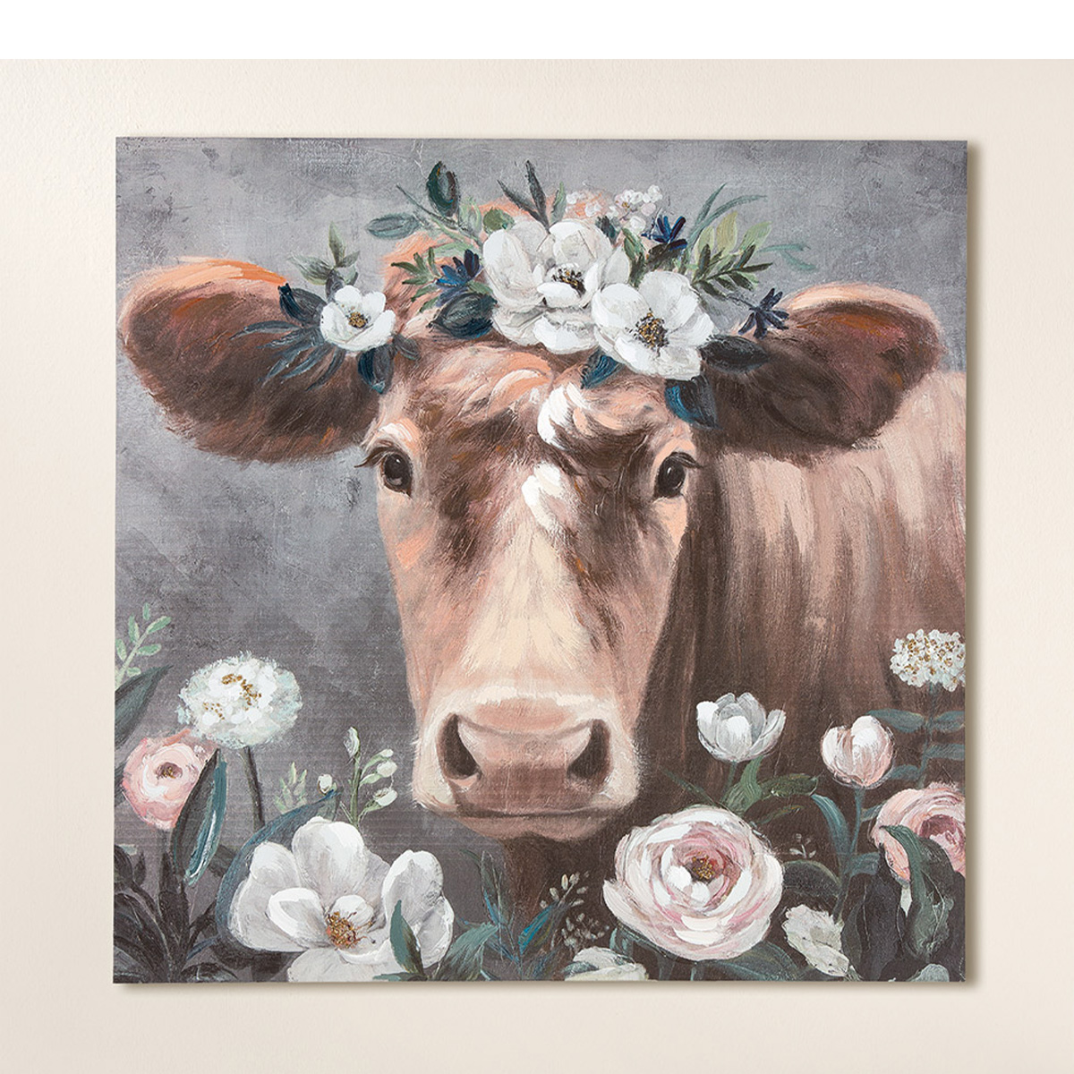 Produktinformationen "Leinwandbild Kuhmotiv Blumenkuh, 90x90cm, Gilde"