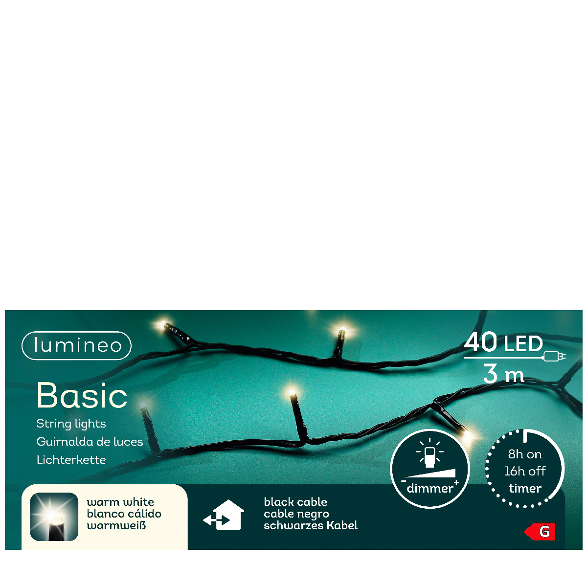 Lichterkette basic, warmes weiß, 40LED, 300cm, Outdoor, Lumineo