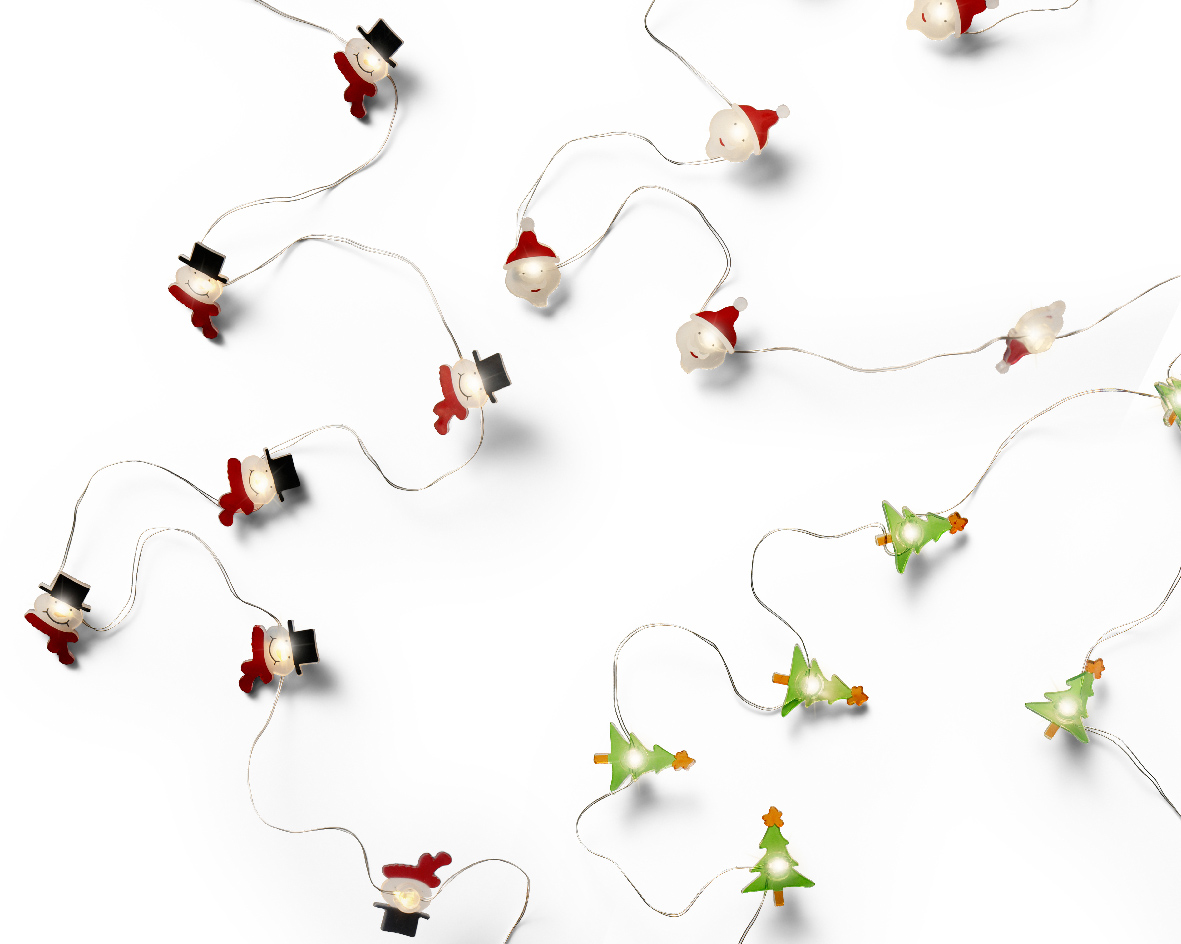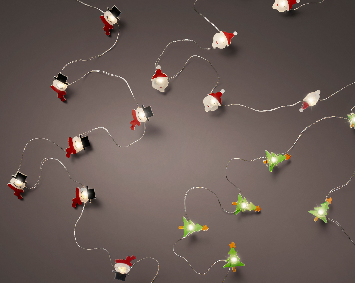unterschiedliche Motive: Weihnachtsmann, Tannenbaum, Schneemann