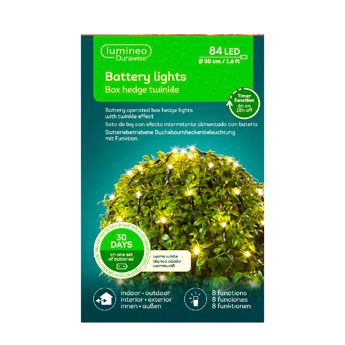 Herstellerinformationen zu "Lichternetz rund, Twinkle, warmes weiß, 84 LED, Ø50cm, Batteriebetrieb, Lumineo"