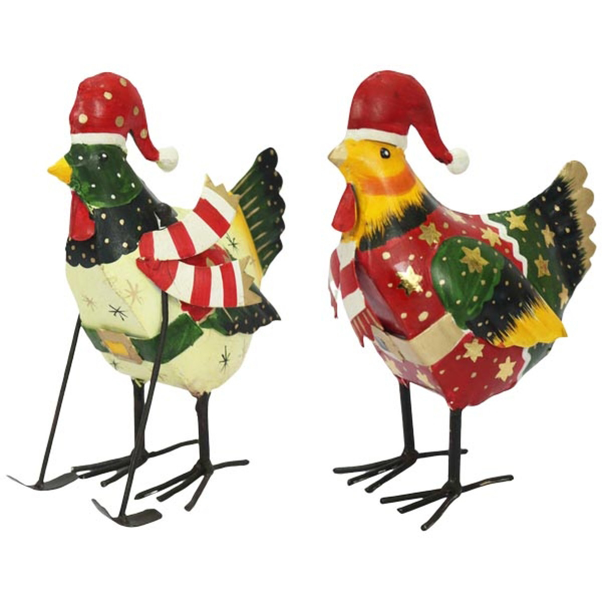 Lustiges Winterhuhn mit Schal, Metallhuhn mit roter Mütze, 19cm