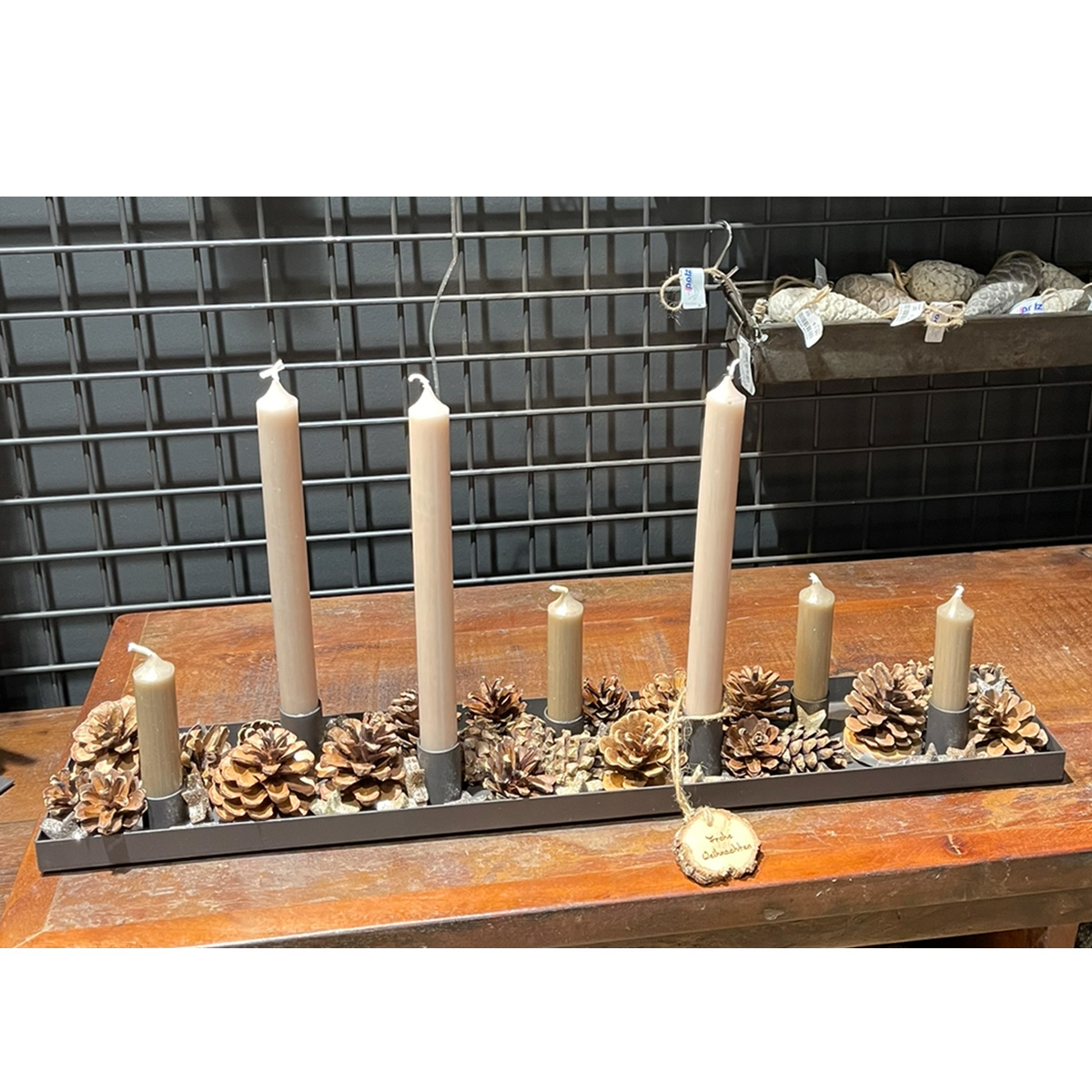Kerzenhalter Rose mit Schale, längliche Kerzenschale für 7 Stabkerzen, 60cm, WMG Grünberger
