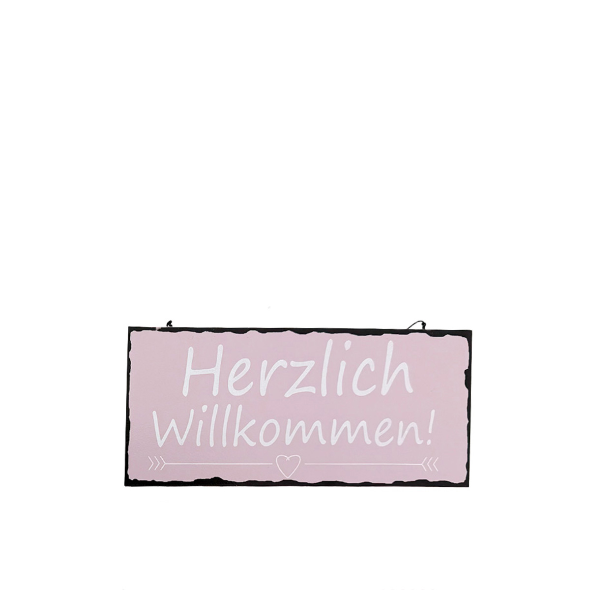 Metall-Schild mit Schriftzug: Herzlich Willkommen, rosa, 20cm