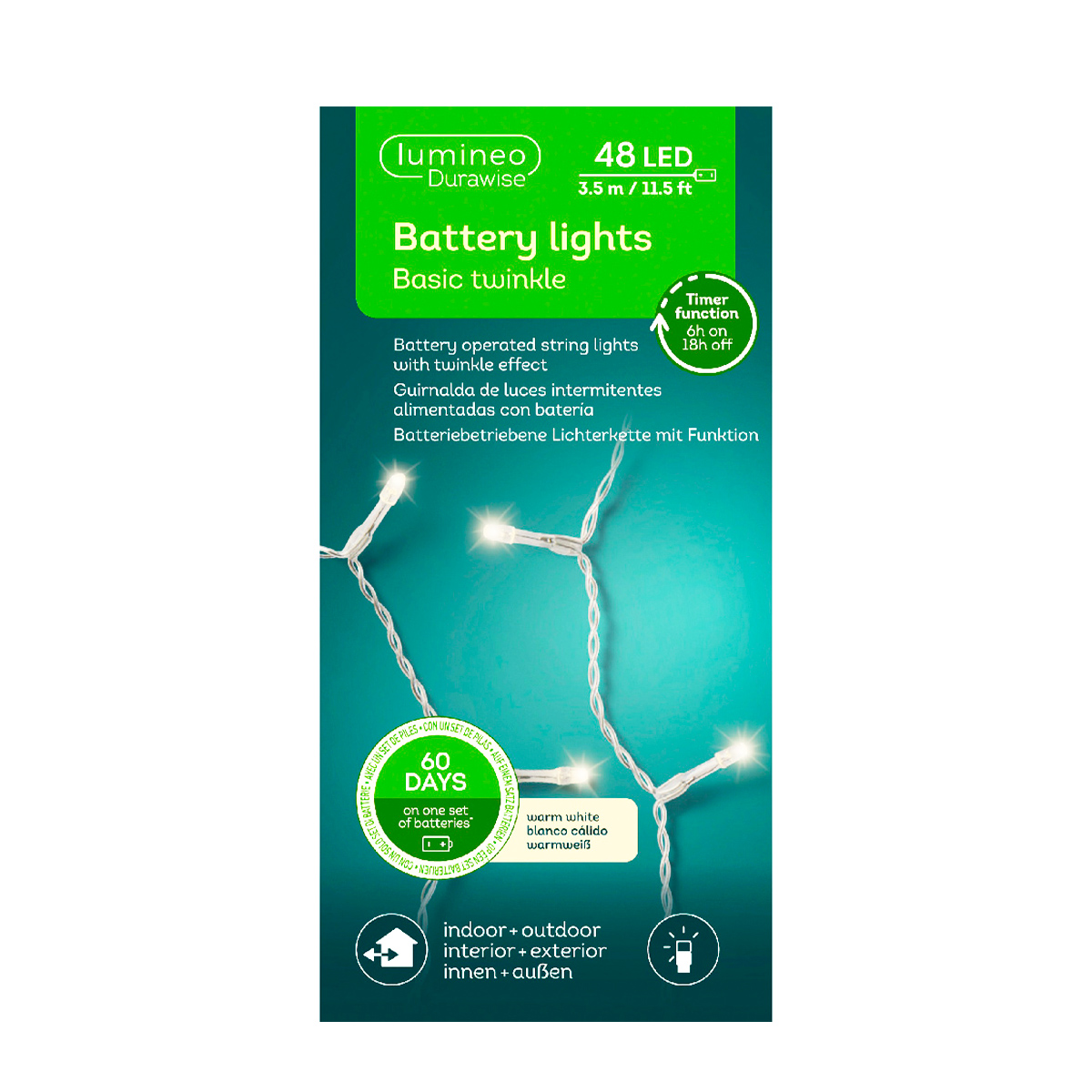 Produktinformationen "Micro LED Lichterkette, warmes weiß, 48 LED, 350cm, Batteriebetrieb, Lumineo"