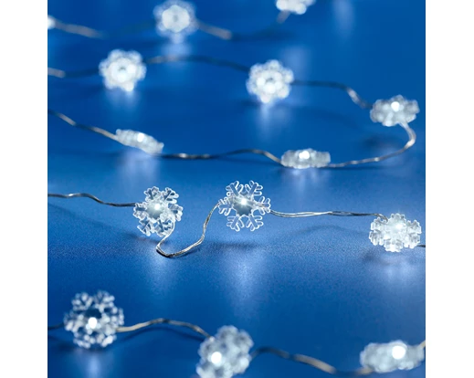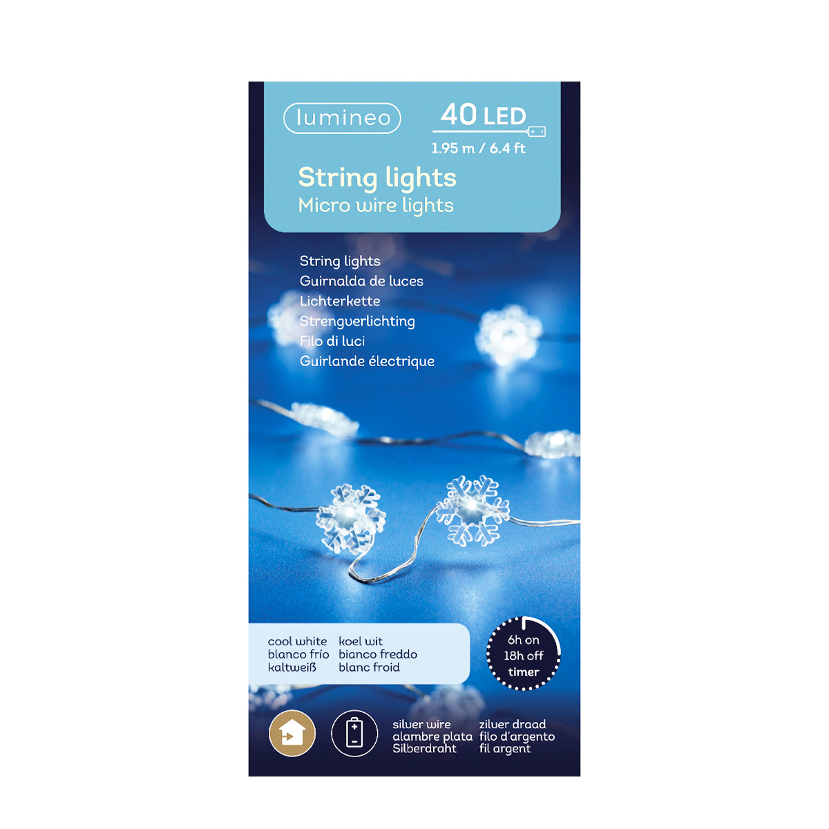 Produktinformationen "Micro LED Strangbeleuchtung Flocken, kaltes weiß, 40St, 195cm, Batteriebetrieb, Lumineo"