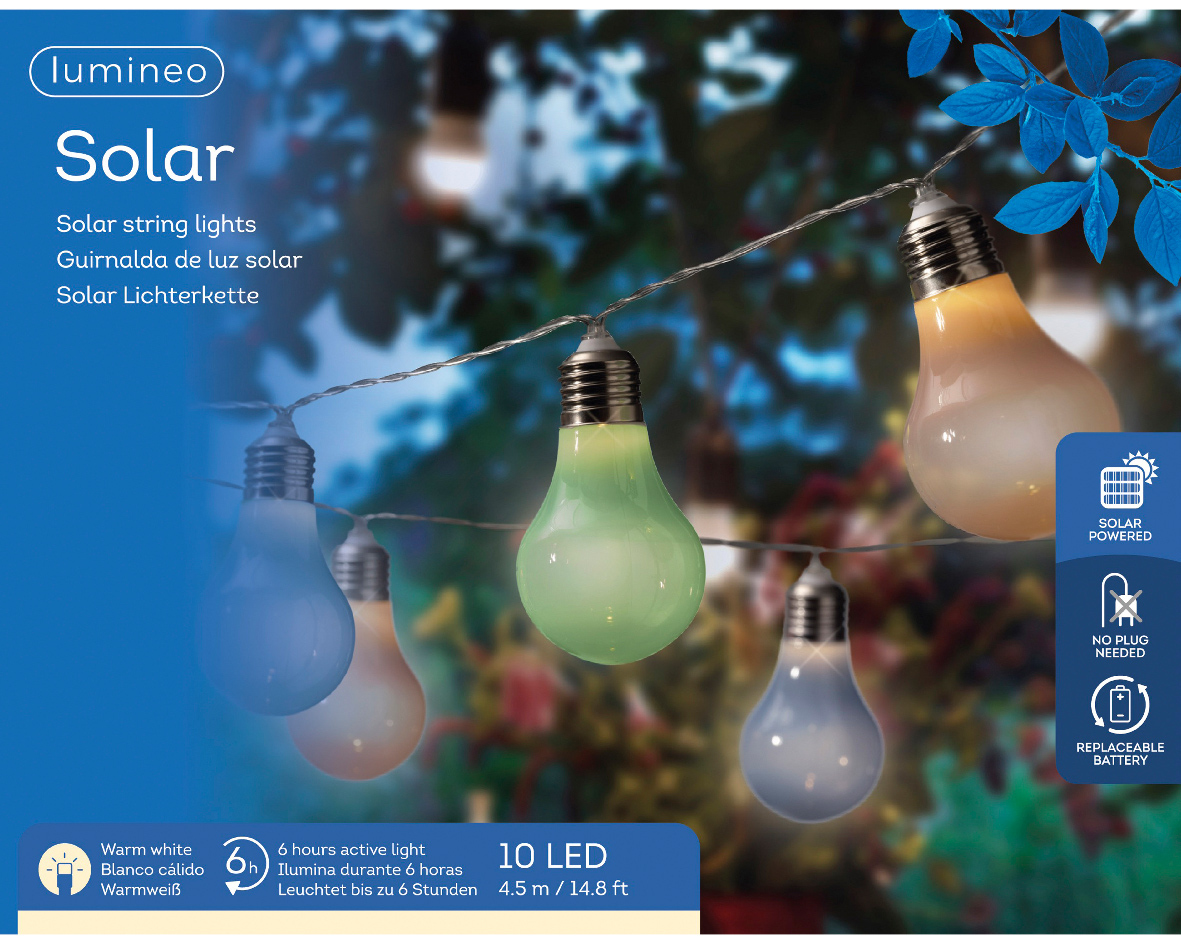 Herstellerinformationen zu "Micro Lichterkette Party Glühbirnen bunt, Solar, 450cm"