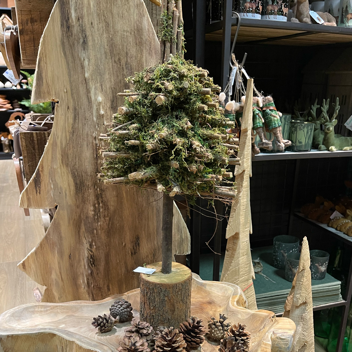 Naturholz Tannenbaum Aride, Deko Tannenbaum mit Moos, 60cm
