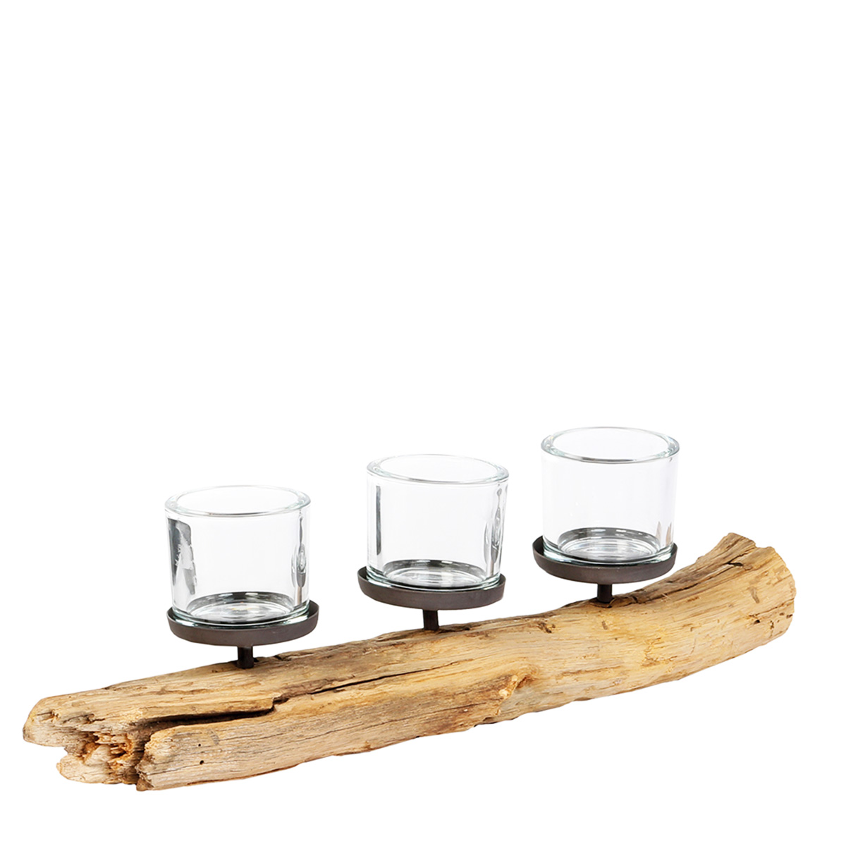 Produktinformationen "Naturholz Windlicht Eichenast, Naturast mit 3 Kerzengläser, 60cm, WMG Grünberger"