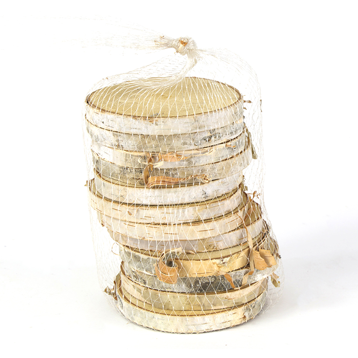 Produktinformationen "Naturholzscheibe Birke, Birkenscheiben natur, 7-8cm, 12St. im Netz"