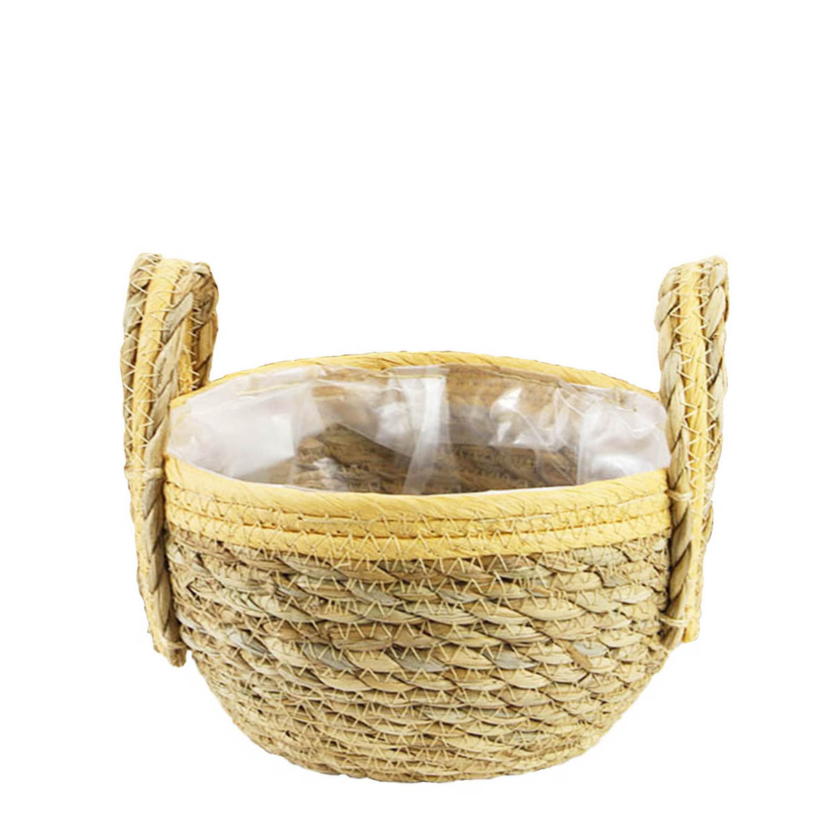 Pflanzkorb Seegras natur-helles orange, Übertopf mit Henkel, Naturkorb mit Folie ausgekleidet, 15x20cm