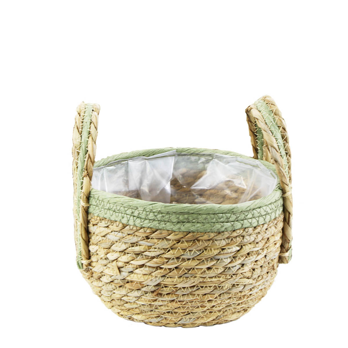 Pflanzkorb Seegras natur, Übertopf mit Henkel natur mit grünem Rand, 14cm, Naturkorb