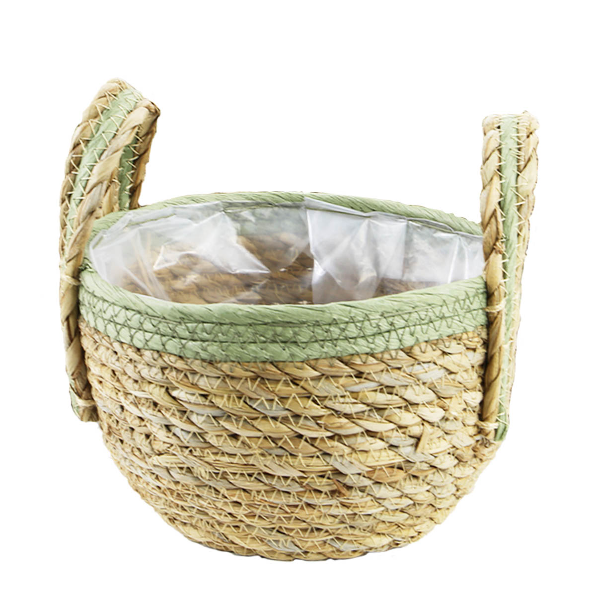 Pflanzkorb Seegras natur, Übertopf mit Henkel natur mit grünem Rand, 17cm, Naturkorb