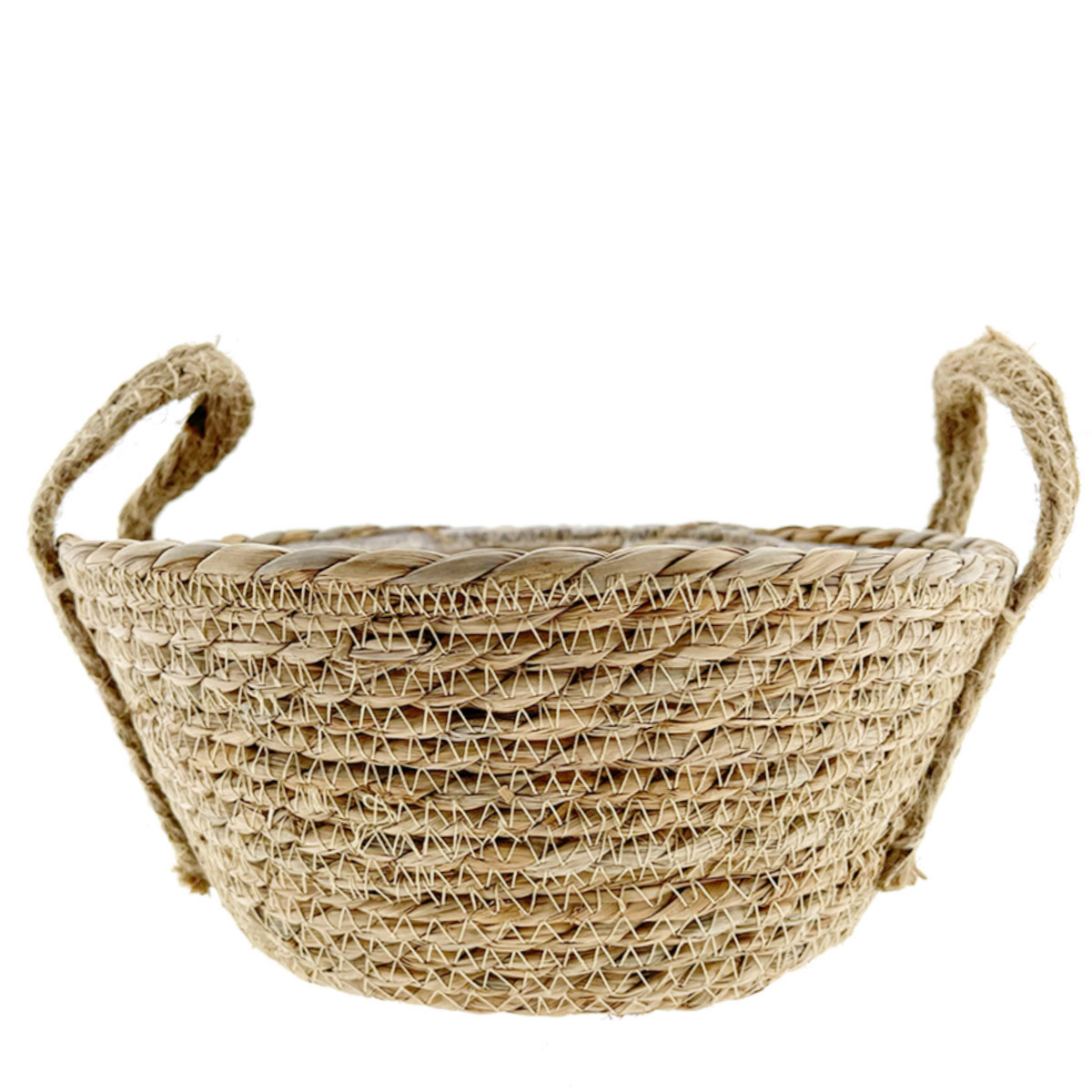 Pflanzkorb Seegras Natur, Übertopf mit Henkel, Naturkorb mit Folie ausgekleidet, 24x11cm