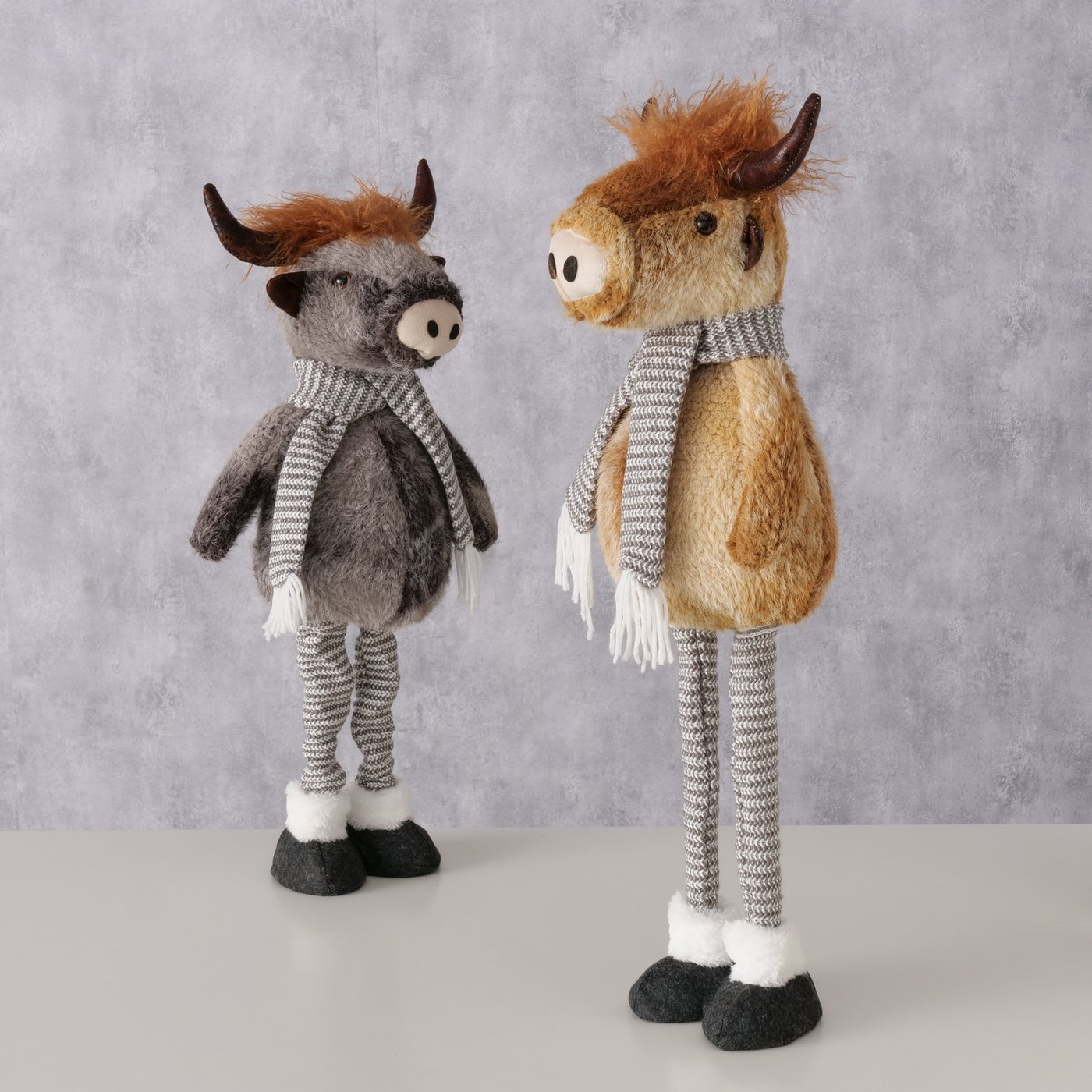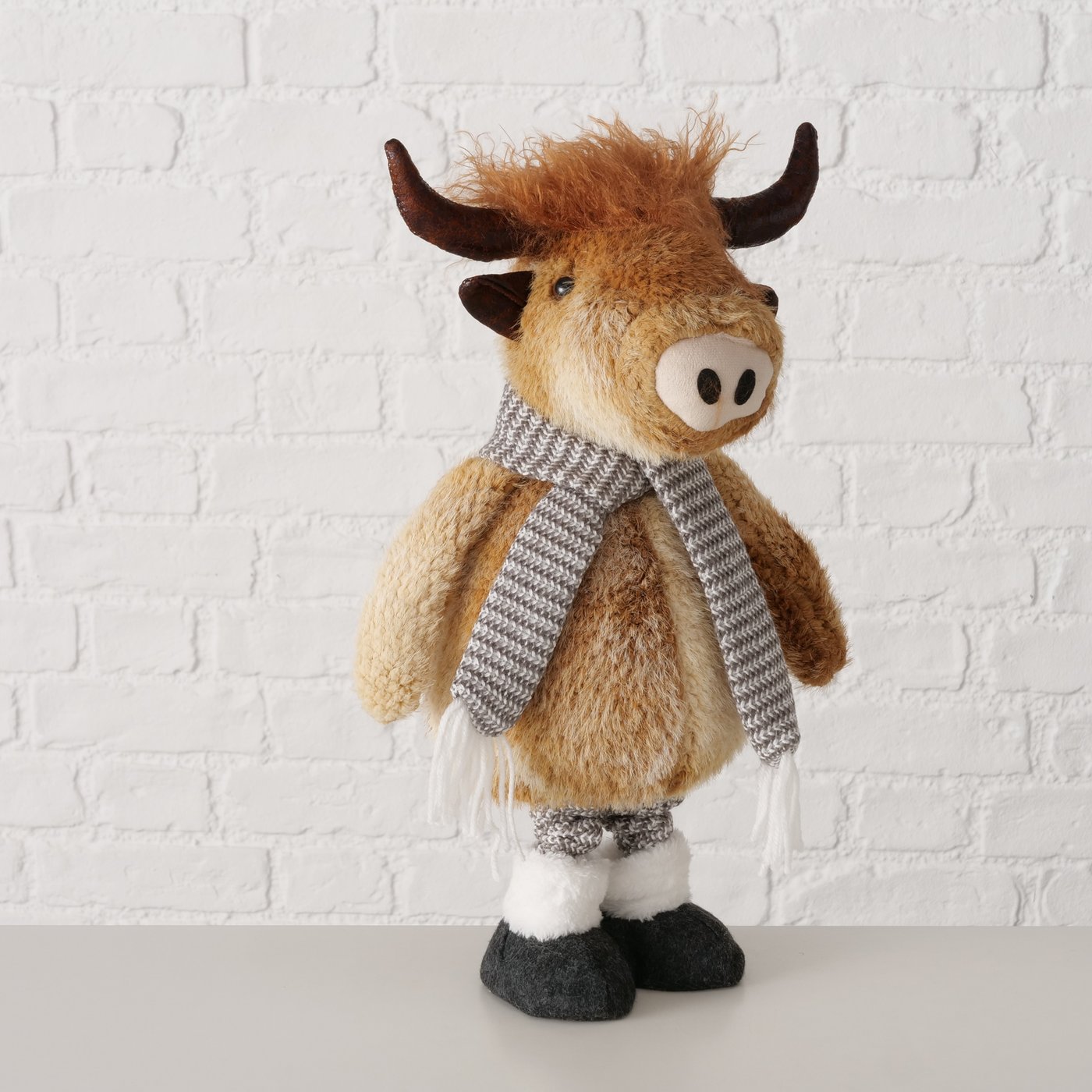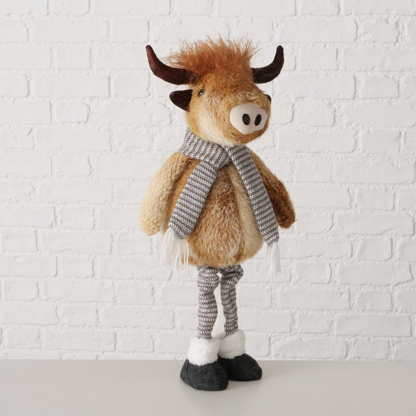 Plüsch Hochlandrind Buffy braun mit Teleskopbeine, ausziehbar bis 67cm, Boltze Home Collection