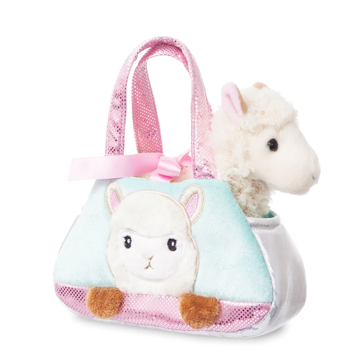 Plüsch Tasche mit Stofftier Alpaka weiß, Fancy Pals, Peek-a-Boo, 20cm, Aurora World