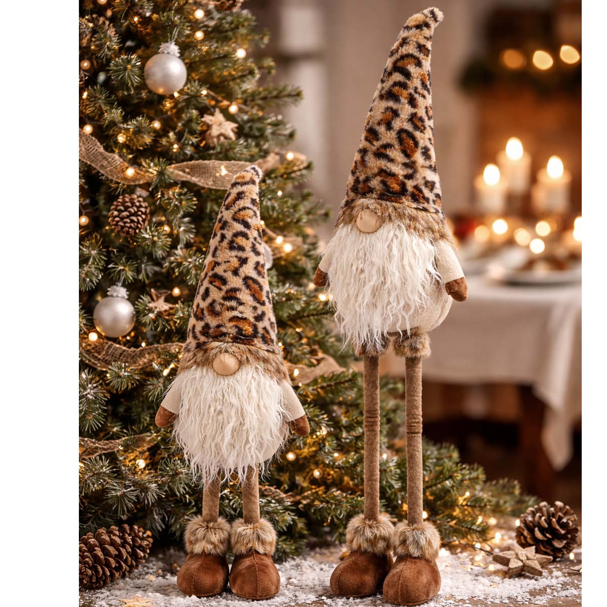 Der weiche Körper, die kuscheligen Details und das trendige Leopardendesign machen ihn zu einem besonderen Highlight in der Winter- und Weihnachtszeit. Ob als ausgefallene Weihnachtsdekoration, als Geschenkidee oder als Statement-Piece in moderner Deko – dieser Wichtel sorgt garantiert für ein Schmunzeln.