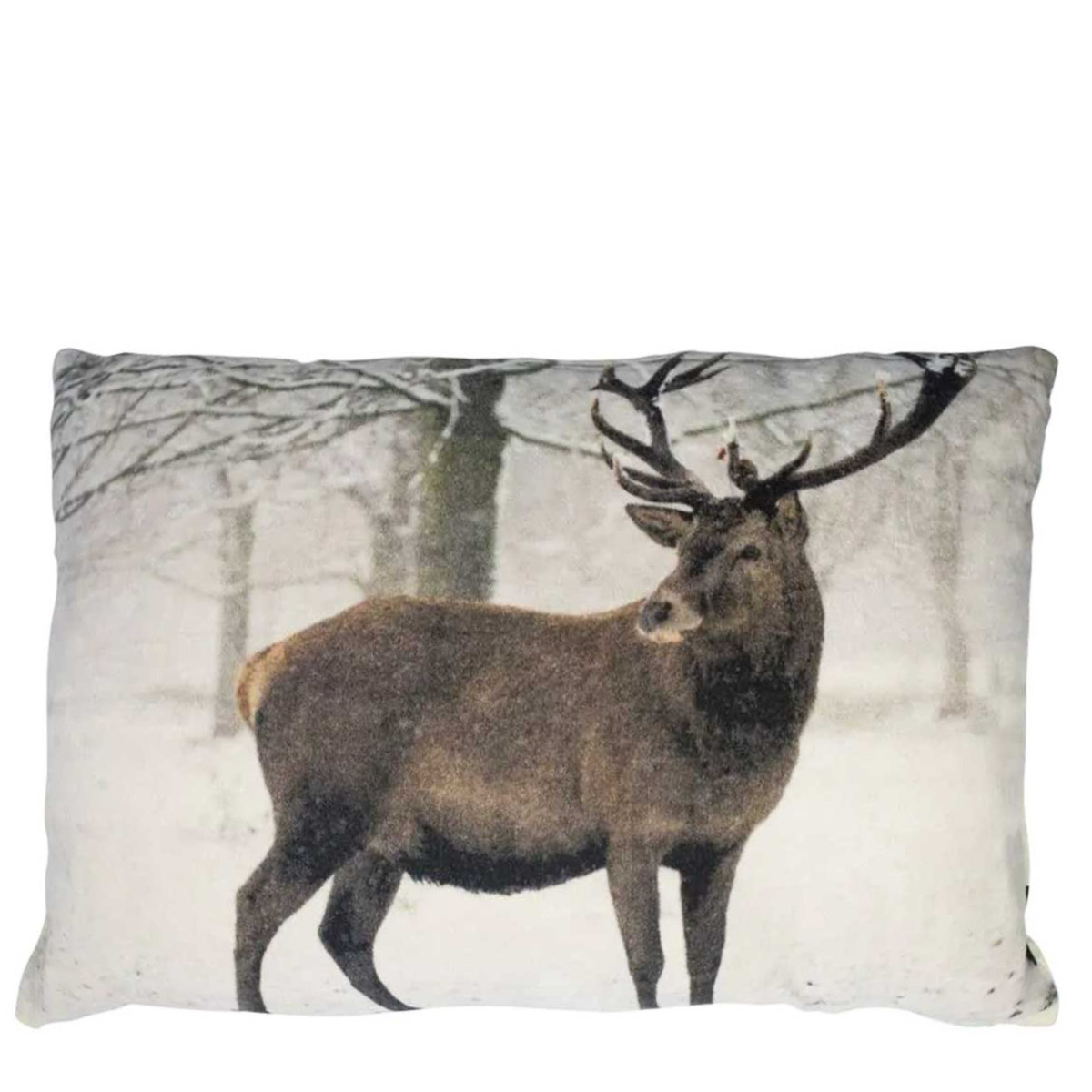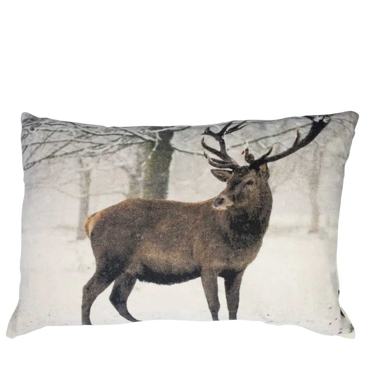 Samt Kissen Hirsch, Hirsch im Schnee, braun-weiß, 40x60cm, Mars & More