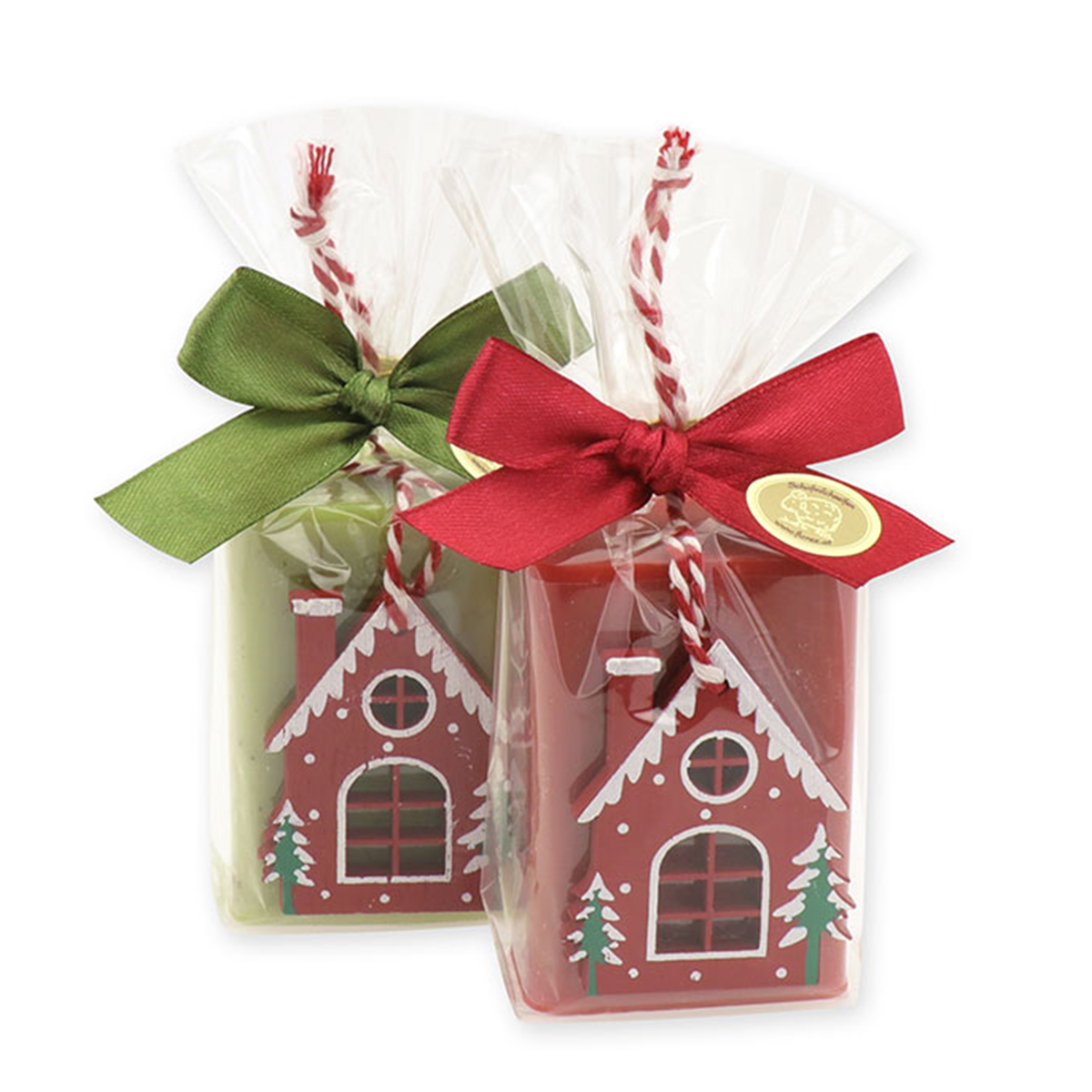 Das niedliche Häuschen-Motiv – wahlweise in Rot oder Grün – macht die Seife zu einem echten Hingucker und passt perfekt in die Advents- und Weihnachtszeit.