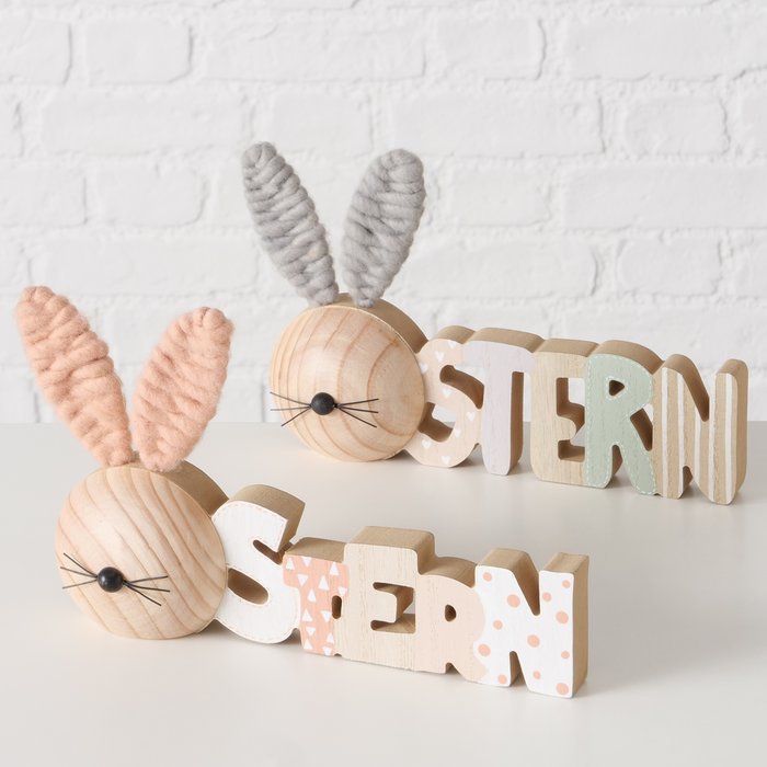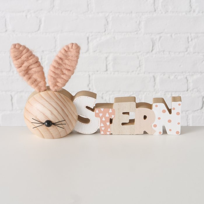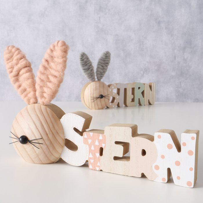 Schriftzug Ostern, Holzhase mit rosa Ohren, 25cm, Boltze Home Collections