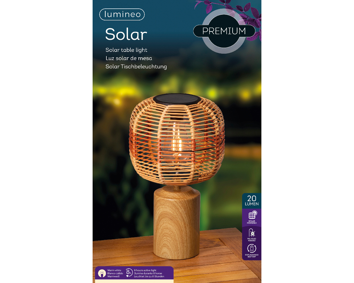 Produktinformationen "Solar Tischlampe Lampenschirm Korb mit Standfuß in Holzoptik, 36cm"