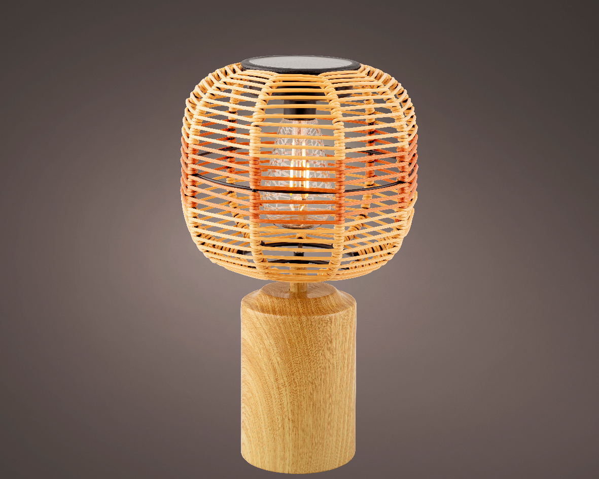 Solar Tischlampe Lampenschirm Korb mit Standfuß in Holzoptik, 36cm