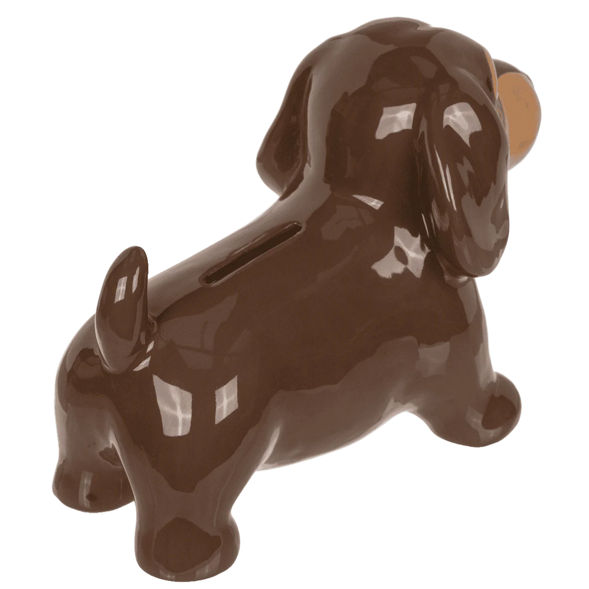 Spardose Hund, Sparschwein Dackel braun, Keramikspardose, 18cm