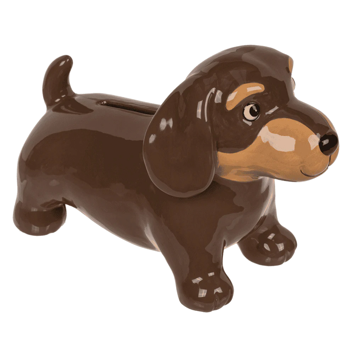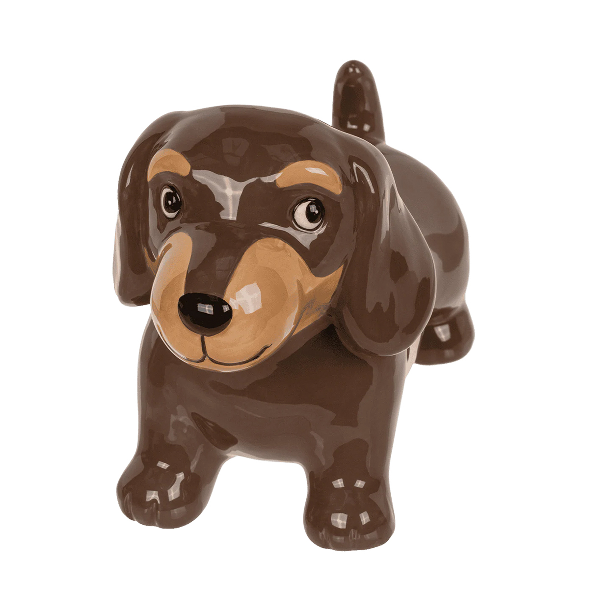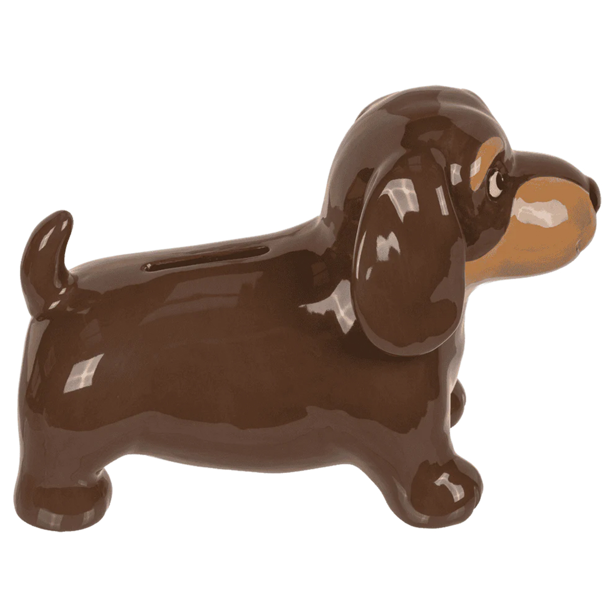 Die braune Gestaltung und die knuffige Dackelform machen ihn zu einer richtig fro¨hlichen Spardose fu¨rs Kinderzimmer.