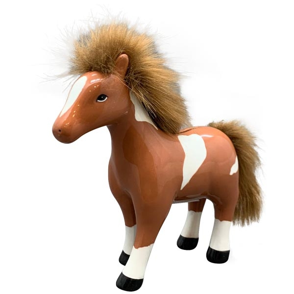 Spardose Pferd used look, Sparschwein Pferd braun-weiß, Keramikspardose