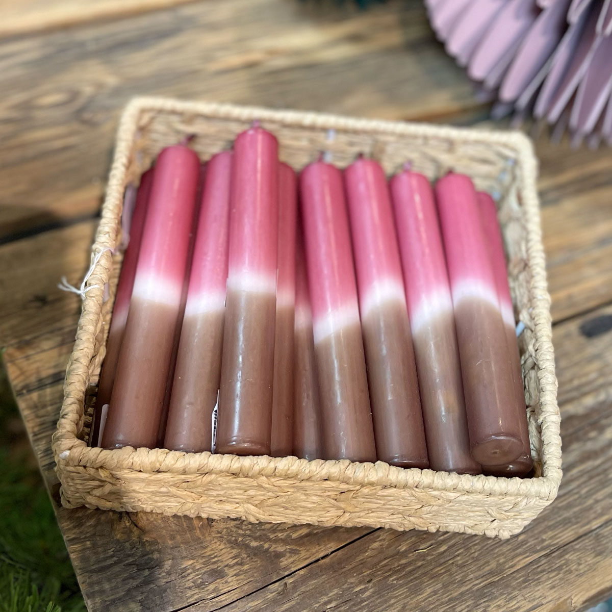 Stabkerze Dip-Dye, altrosa-taupe, Wachskerze, 180x22mm, Kerzenfarm Hahn