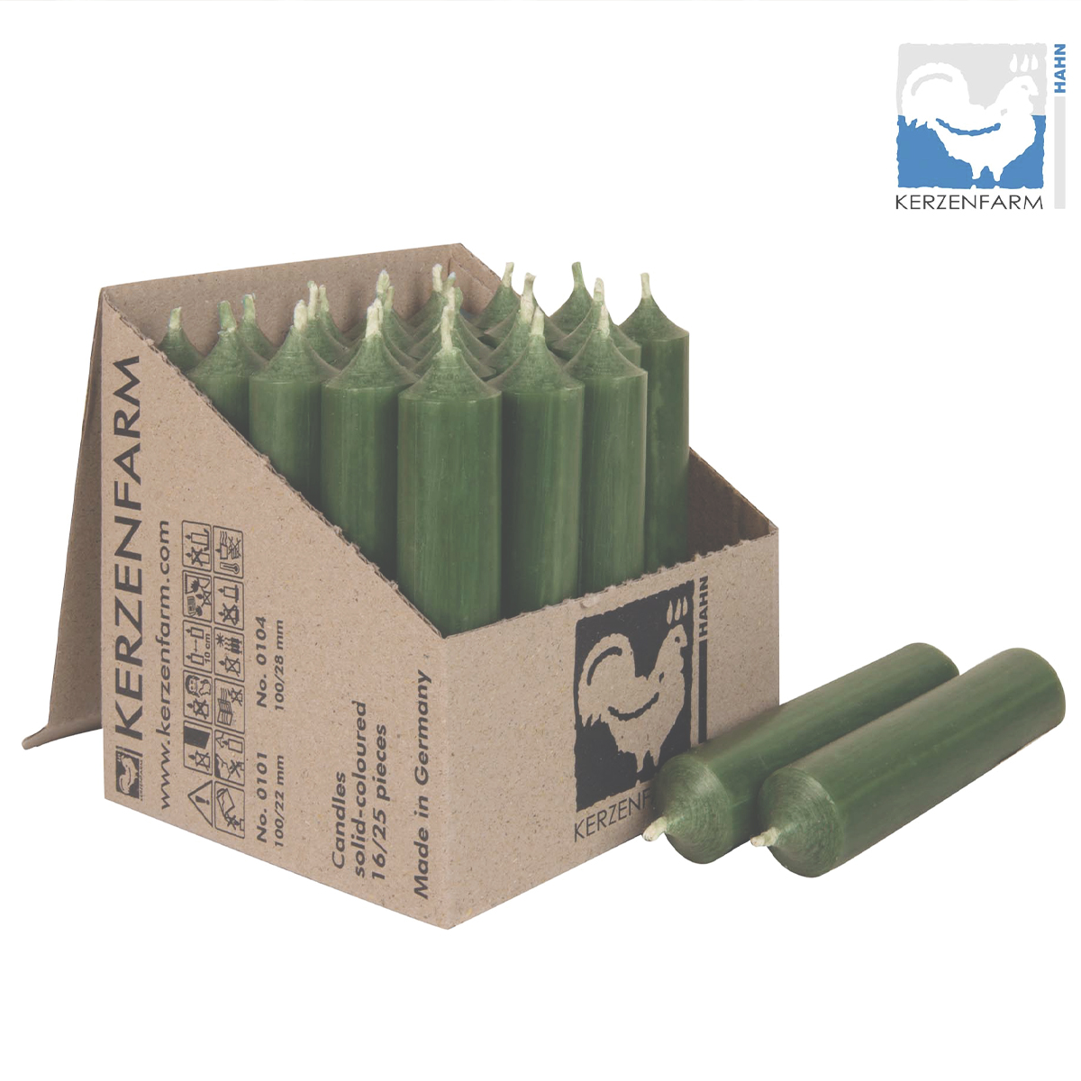 Stabkerze kieferngrün rustikal, Wachskerze, 100x22mm, Kerzenfarm Hahn