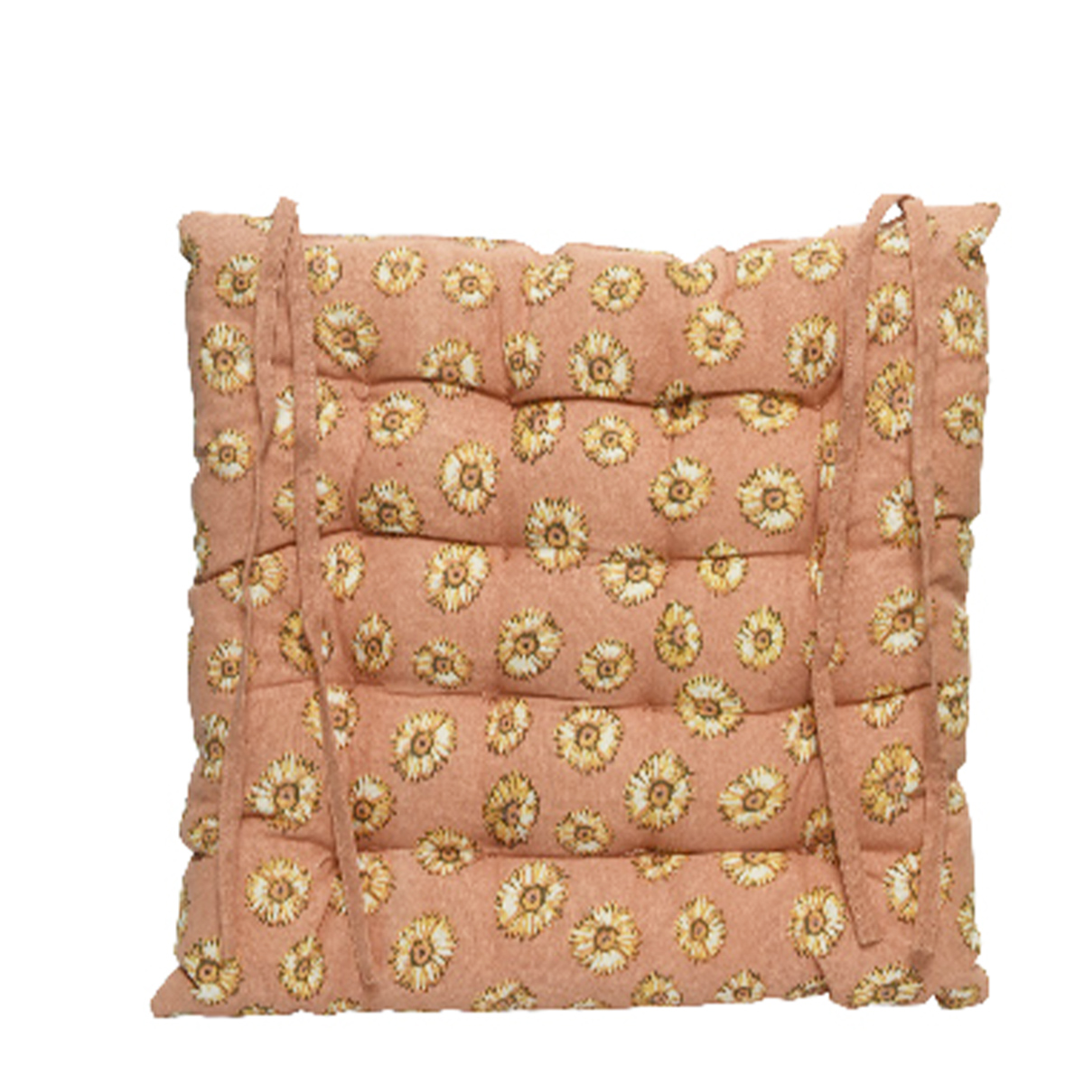 Produktinformationen "Stuhlkissen mit Blumen und Bändern, braunrot, 40x40cm, Baumwolle"