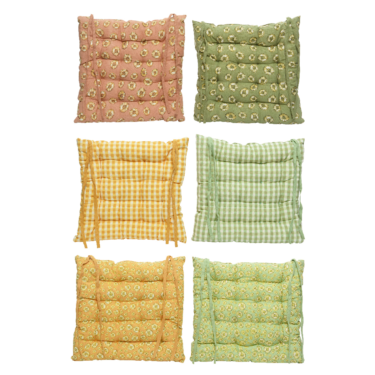 Produktinformationen "Stuhlkissen mit Blumen und Bändern, grün, 40x40cm, Baumwolle"