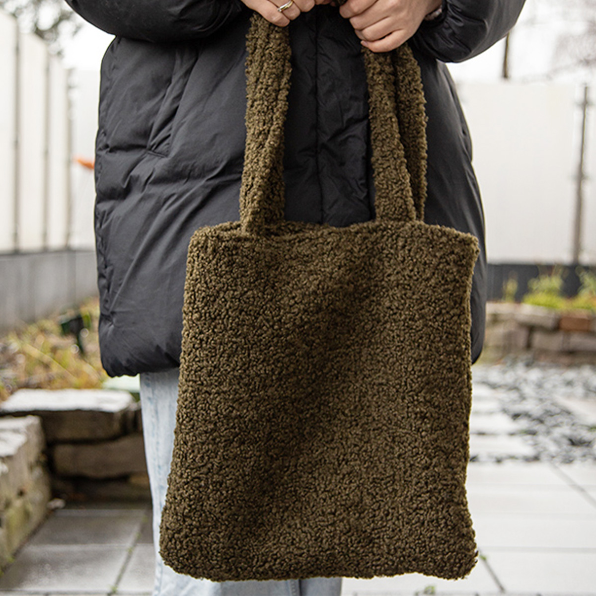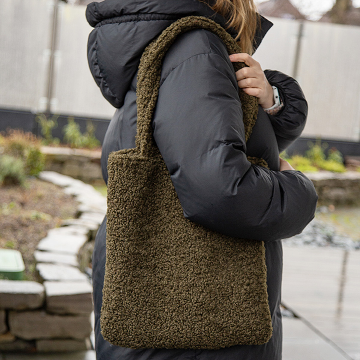 Produktinformationen "Teddytasche, Schultertasche, Shopper aus Teddyfell, dunkelgrün"