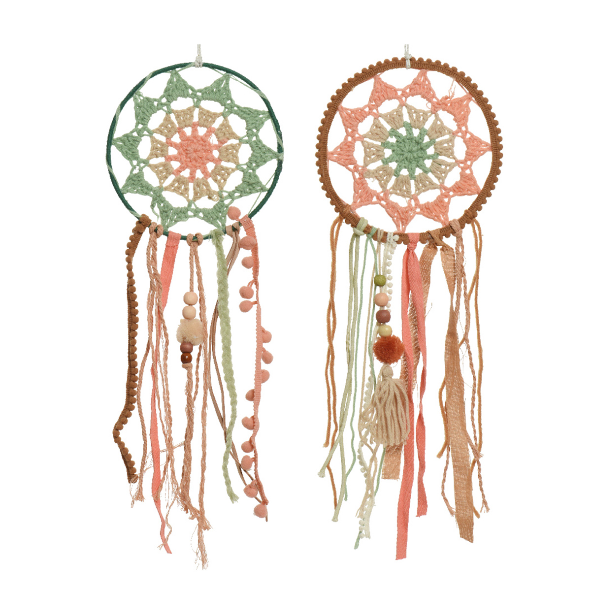 Herstellerinformationen zu "Traumfänger Boho gehäckelt, Dreamcatcher mit Pompons und Schnüre, braun-lachs"
