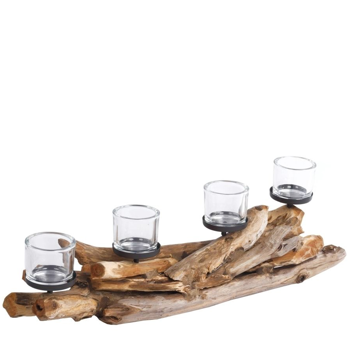 Treibholz Windlicht Erosi Tanduk, Naturholz Windlicht mit 4 Kerzengläser, 90cm, WMG Grünberger