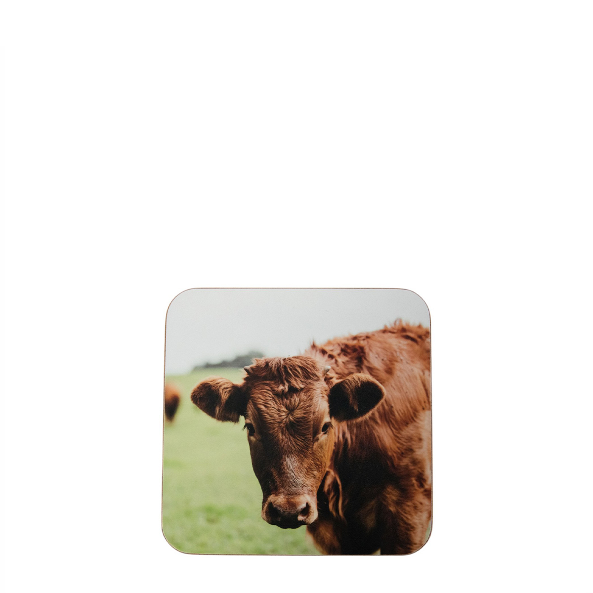 Untersetzer Schweizer Kuh, Kuh auf der Wiese, 10x10cm, Set/6, MDF/Kork, Mars & More