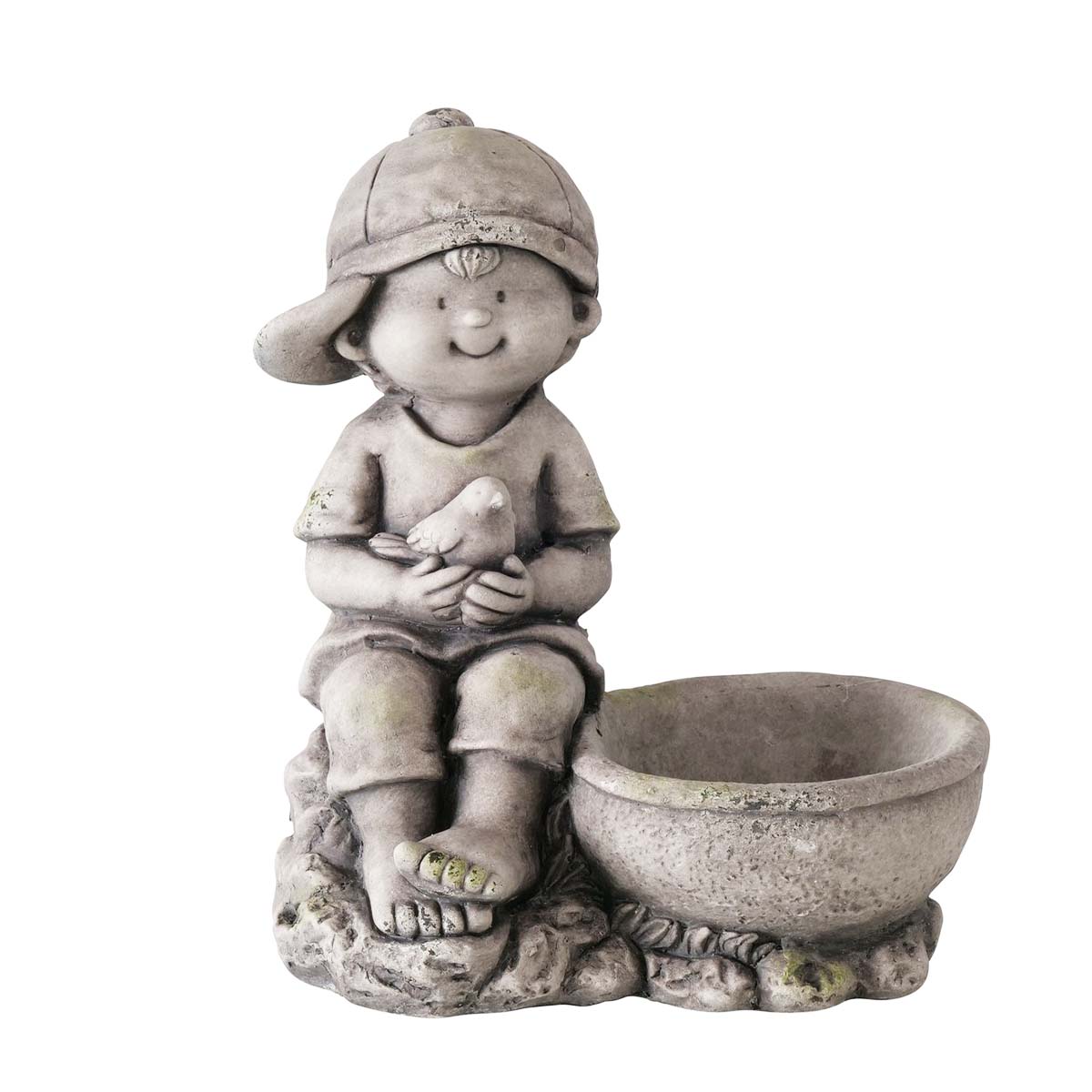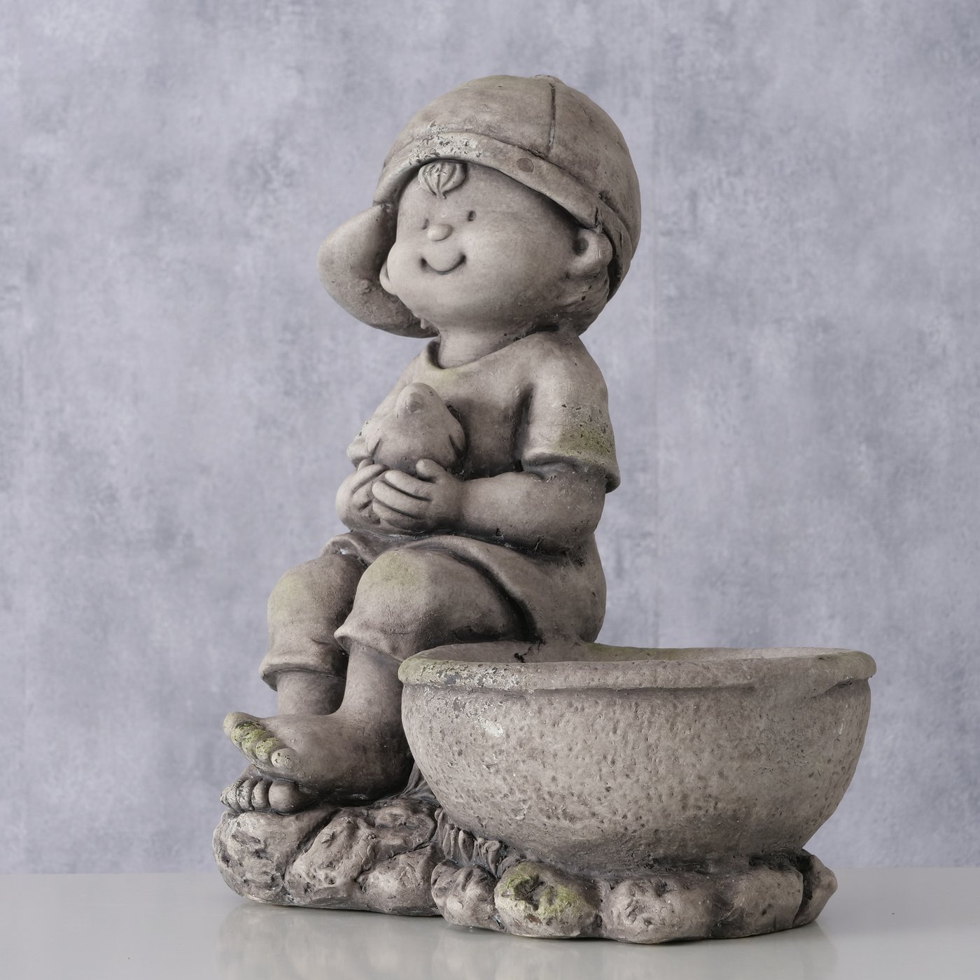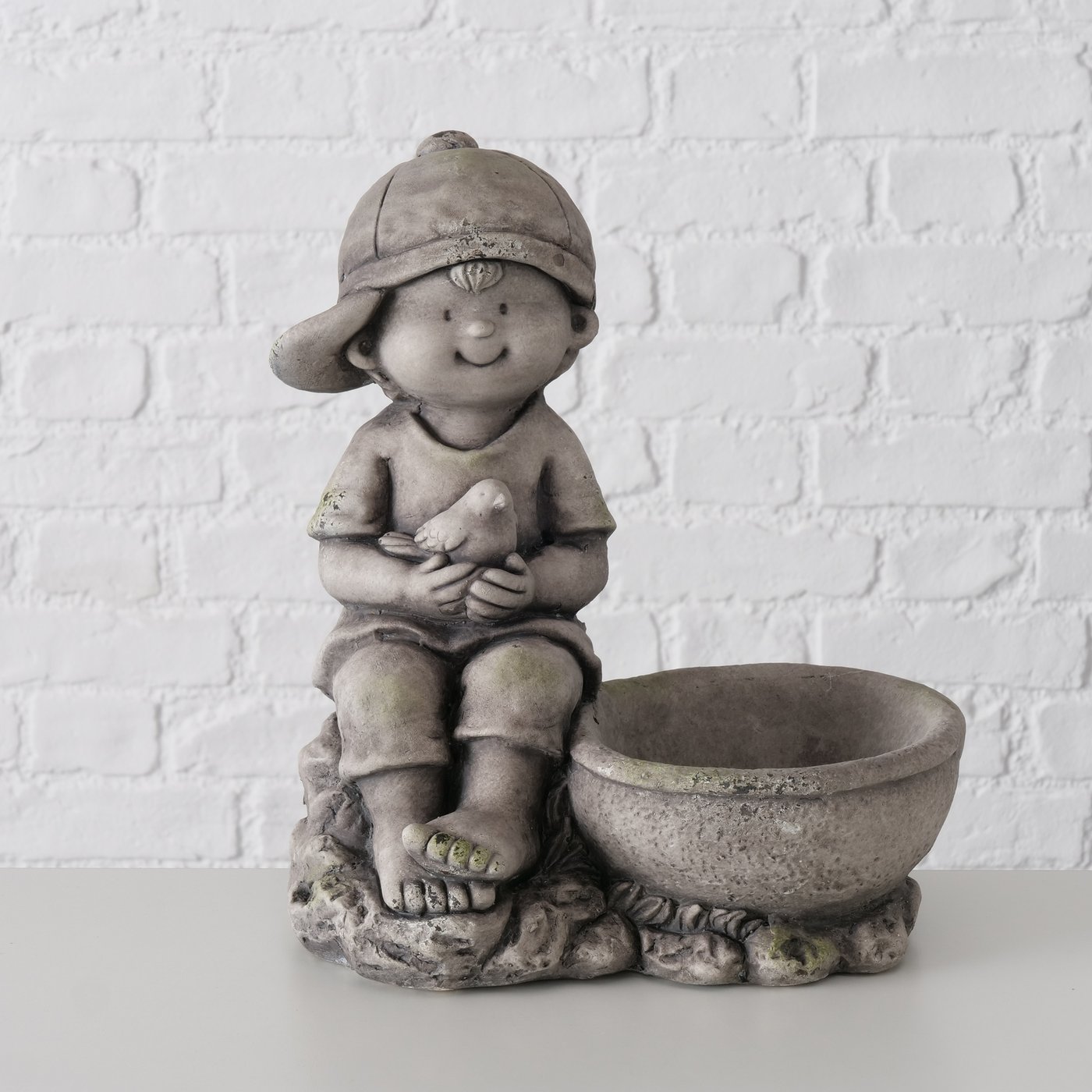 Vogeltränke Linja, Vogelbad Junge mit Vogel, Magnesia, 35cm, Boltze Home Collections