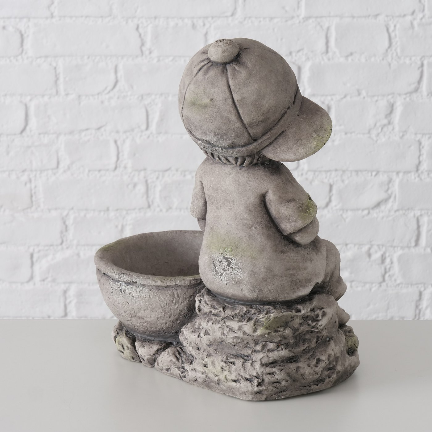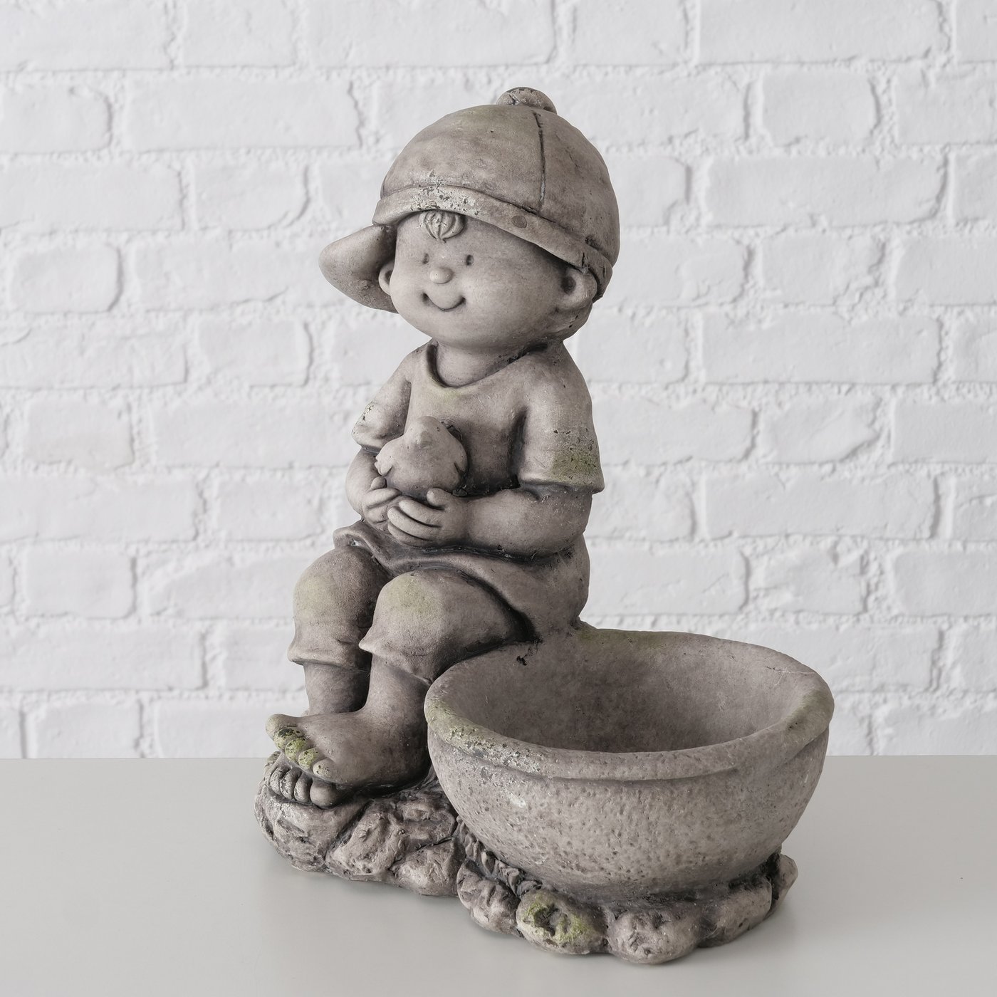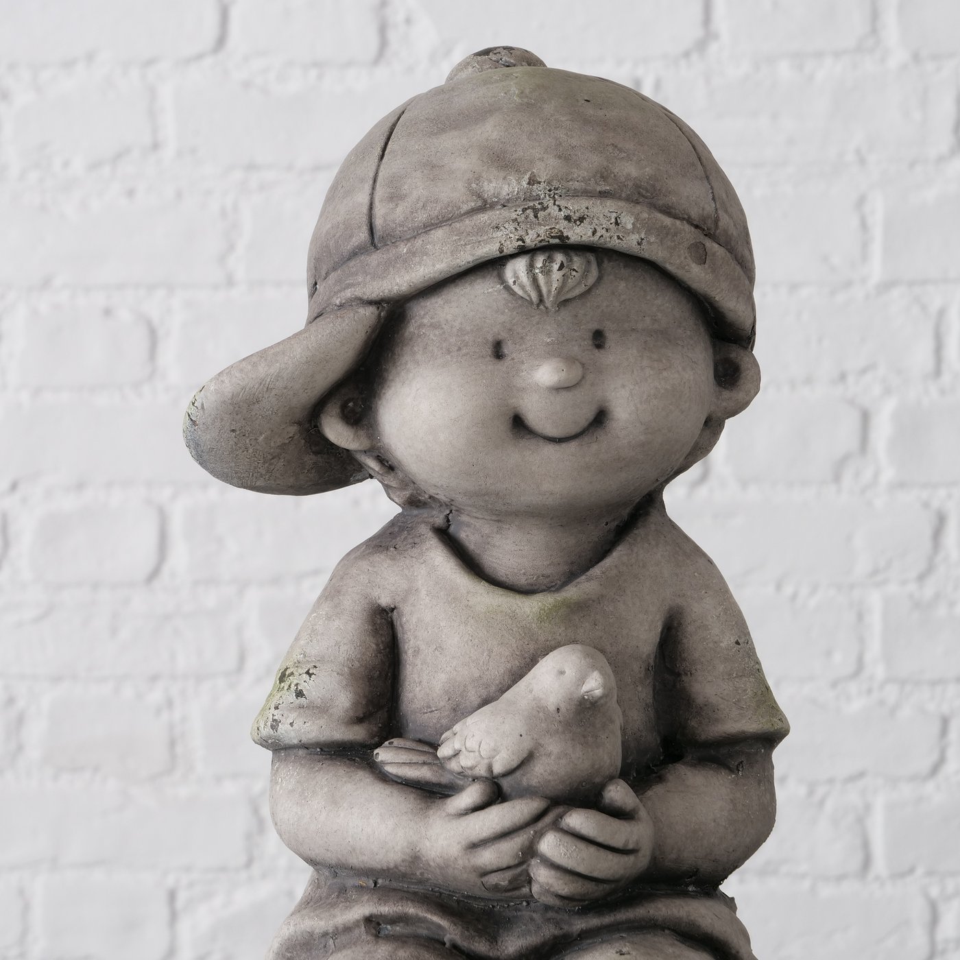 Vogeltränke Linja, Vogelbad Junge mit Vogel, Magnesia, 35cm, Boltze Home Collections