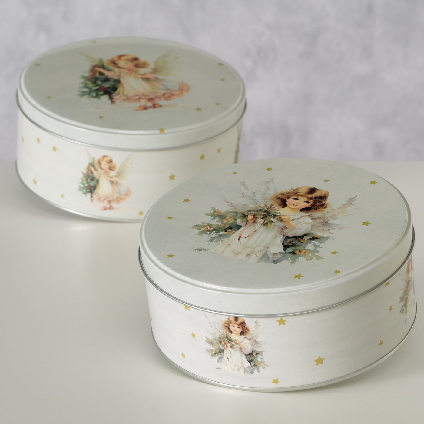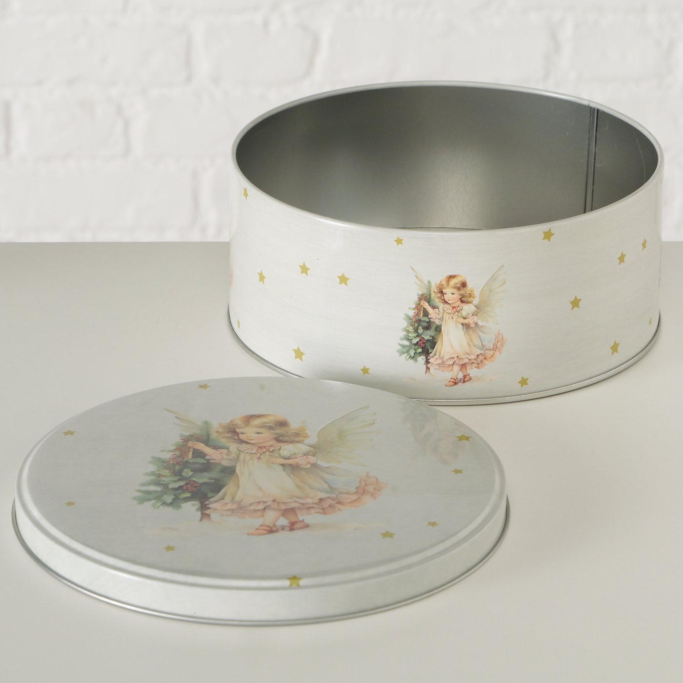 Die matte Oberfläche in Cremeweiß wirkt edel und zeitlos, während der Rundumdruck mit Engel und Tannengrün für eine warme, nostalgische Note sorgt. Ob für Plätzchen, Gebäck oder kleine Leckereien – hier wird Aufbewahren fast schon zur Dekoration.