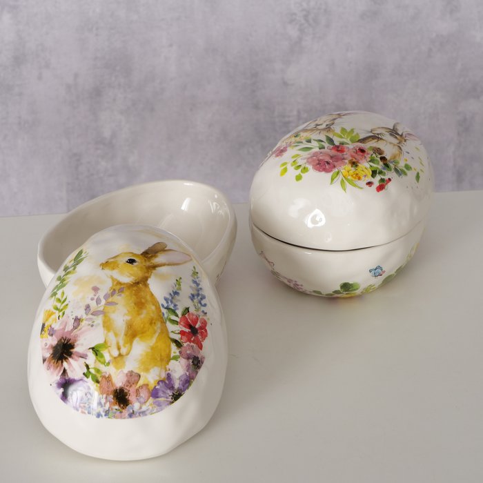 Vorratsdose Osterei Hase Hospa, Keramikei mit Hasenmotiv zum Aufmachen, Boltze Home Collections