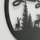 Durch den runden Rahmen und die feine Silhouette wirkt das Wandobjekt prägnant, aber nicht aufdringlich. Die Hirsche fügen sich ganz selbstverständlich in die Szene ein und unterstreichen den naturnahen, bayerischen Charakter dieses besonderen Stücks.