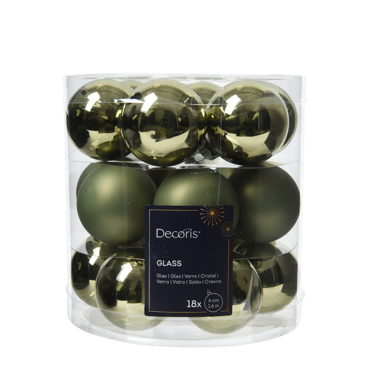 Weihnachtsbaumkugeln aus Glas, rosmaringrün glanz/matt, Ø4cm, 18St/Box, Decoris