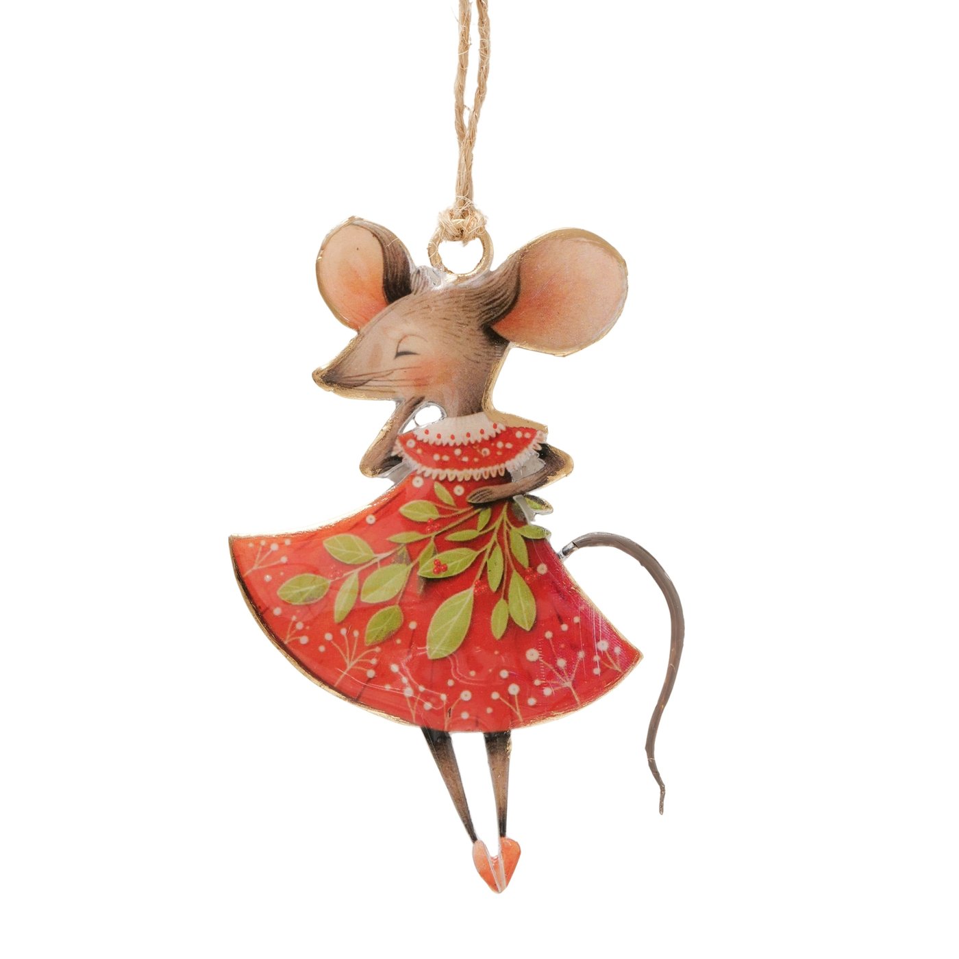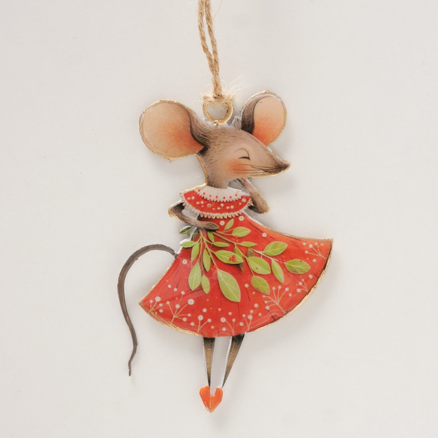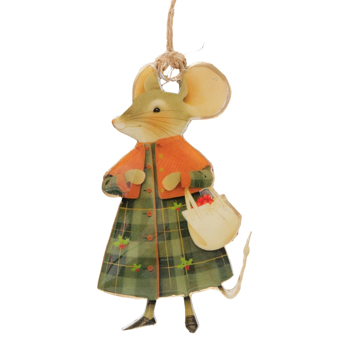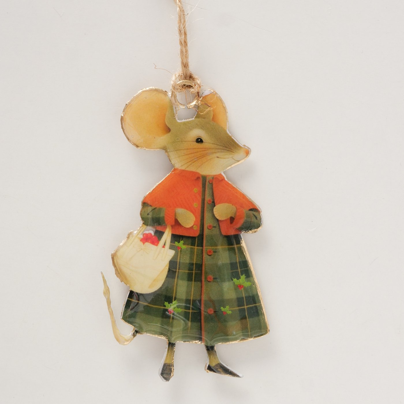 Weihnachtshänger Maus Mossy, Emaillehänger Maus mit Kleid oder Mantel, Boltze Home Collections