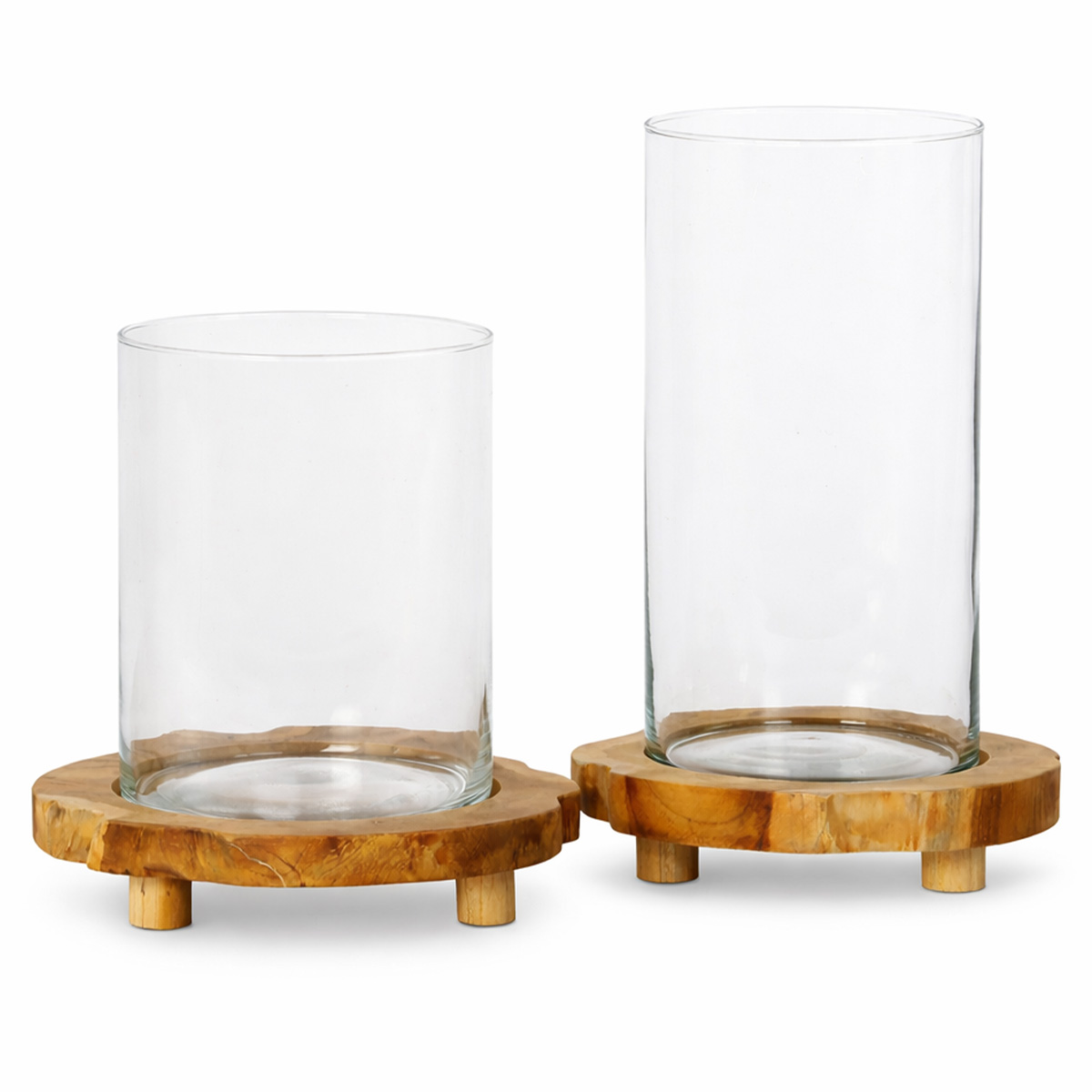 Der massive Naturholz-Sockel mit seiner lebendigen Maserung bildet die perfekte Basis für das hohe, klare Glas und sorgt für eine harmonische Verbindung aus rustikalem Charakter und schlichter Eleganz. Mit einer Gesamthöhe von 30cm wirkt dieses Holz-Windlicht besonders präsent und schafft eine stimmungsvolle Lichtquelle für Wohnraum, Eingangsbereich oder überdachte Terrasse.