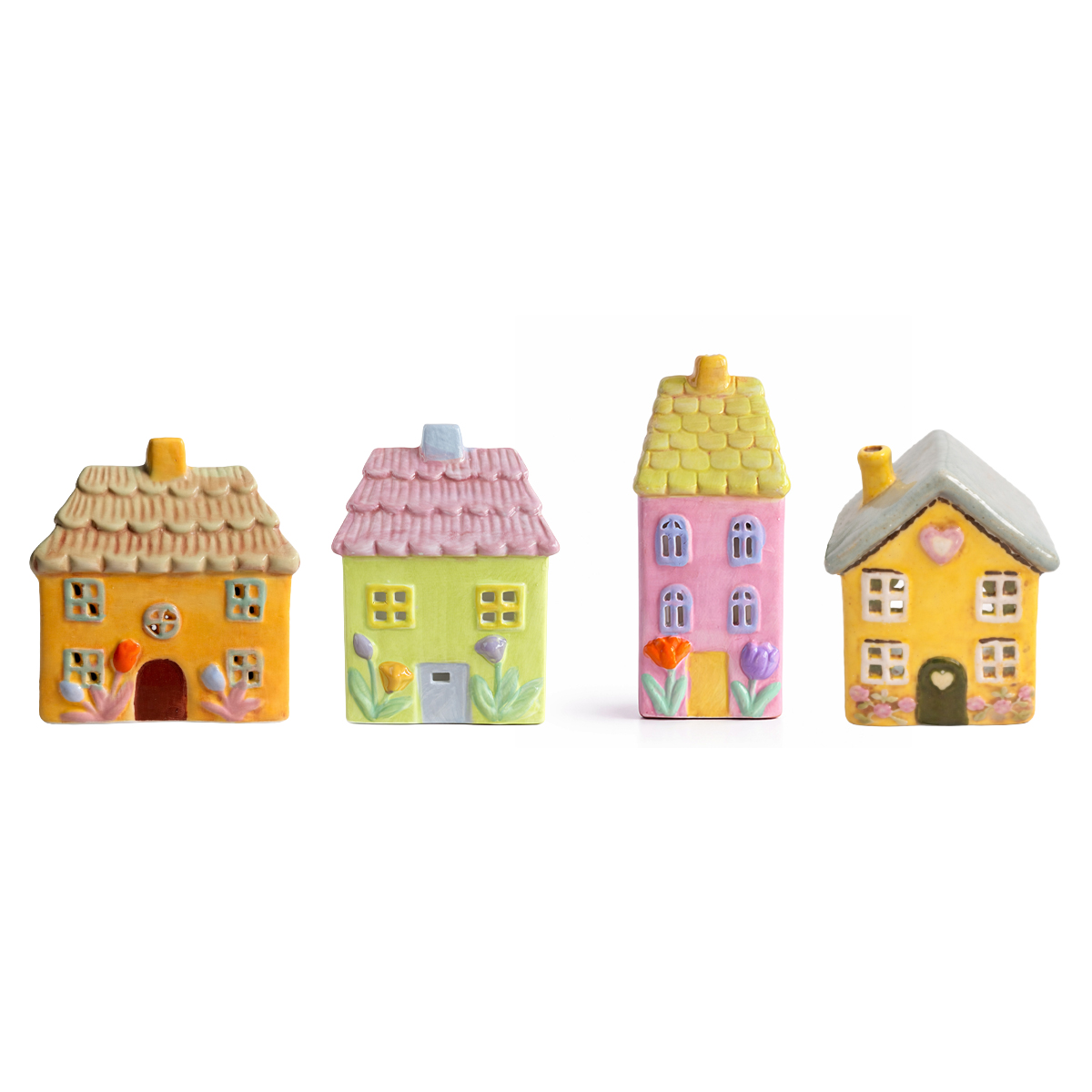 Mit einem Teelicht oder einer kleinen Kerze im Inneren entsteht durch die Fensteröffnungen ein sanftes, stimmungsvolles Licht, das Gemütlichkeit und Geborgenheit ausstrahlt. Ob einzeln dekoriert oder gemeinsam mit weiteren Keramikhäusern arrangiert – dieses Windlicht sorgt das ganze Jahr über für eine liebevolle Atmosphäre, nicht nur im Frühling oder Sommer.