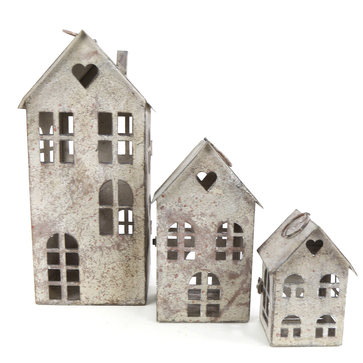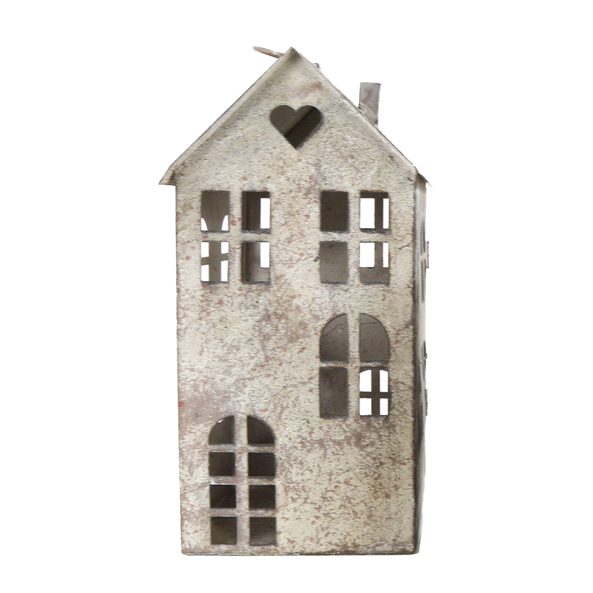 Produktinformationen "Windlicht Haus mit Herz, Metallhaus grau antik used look, 17x36cm"