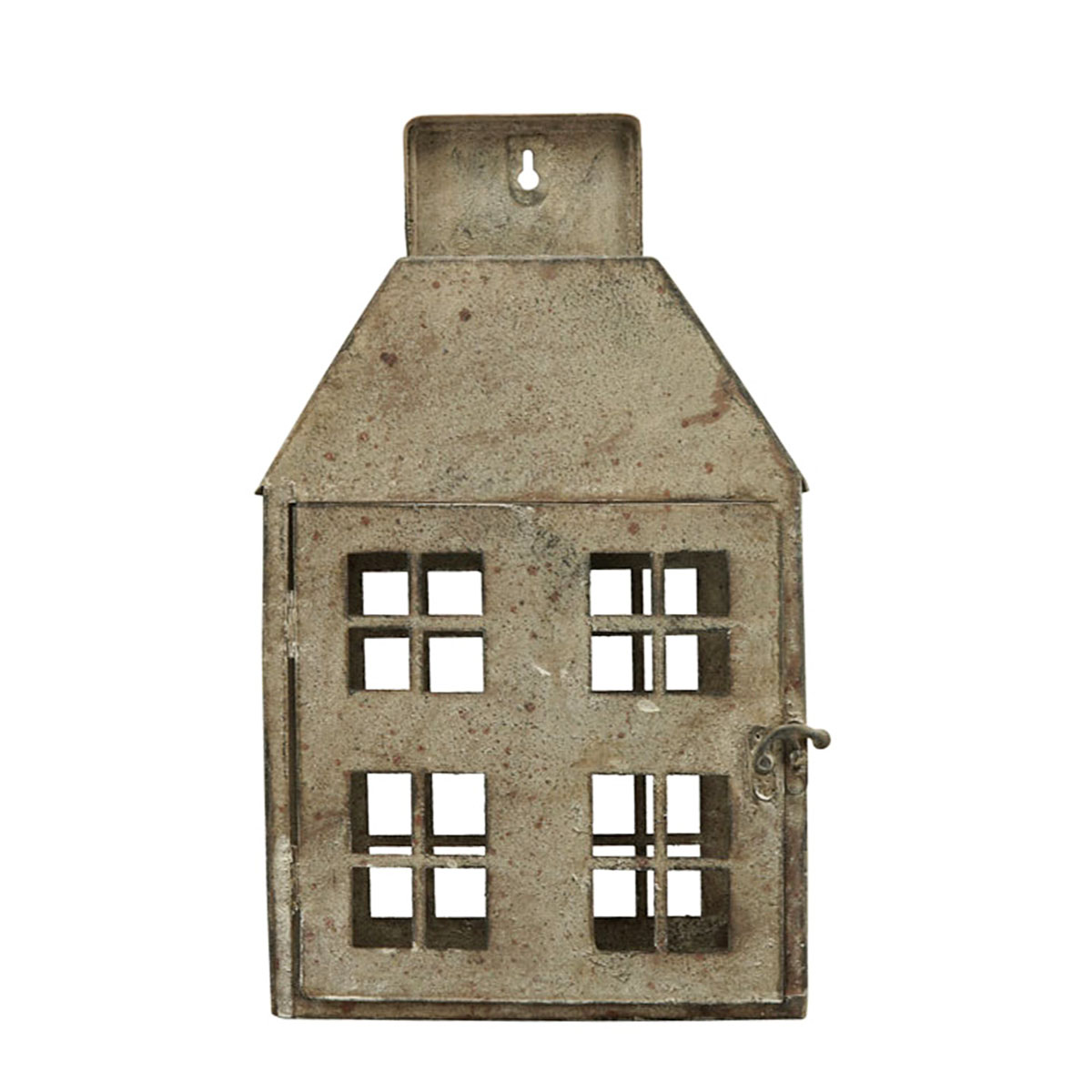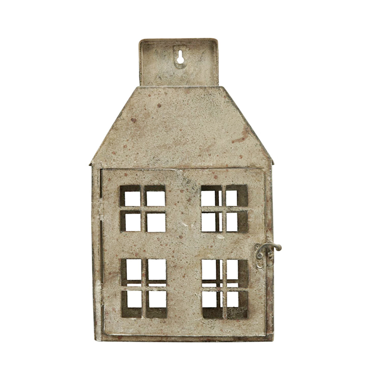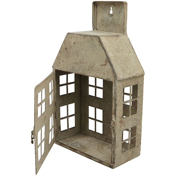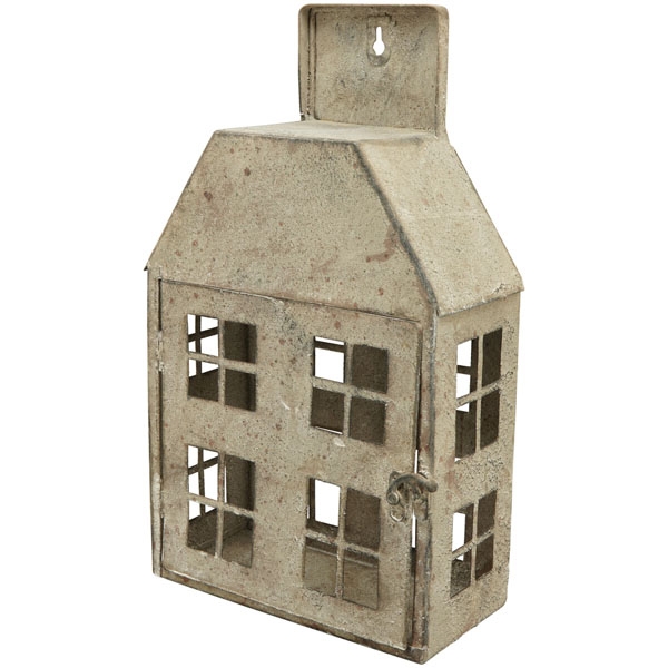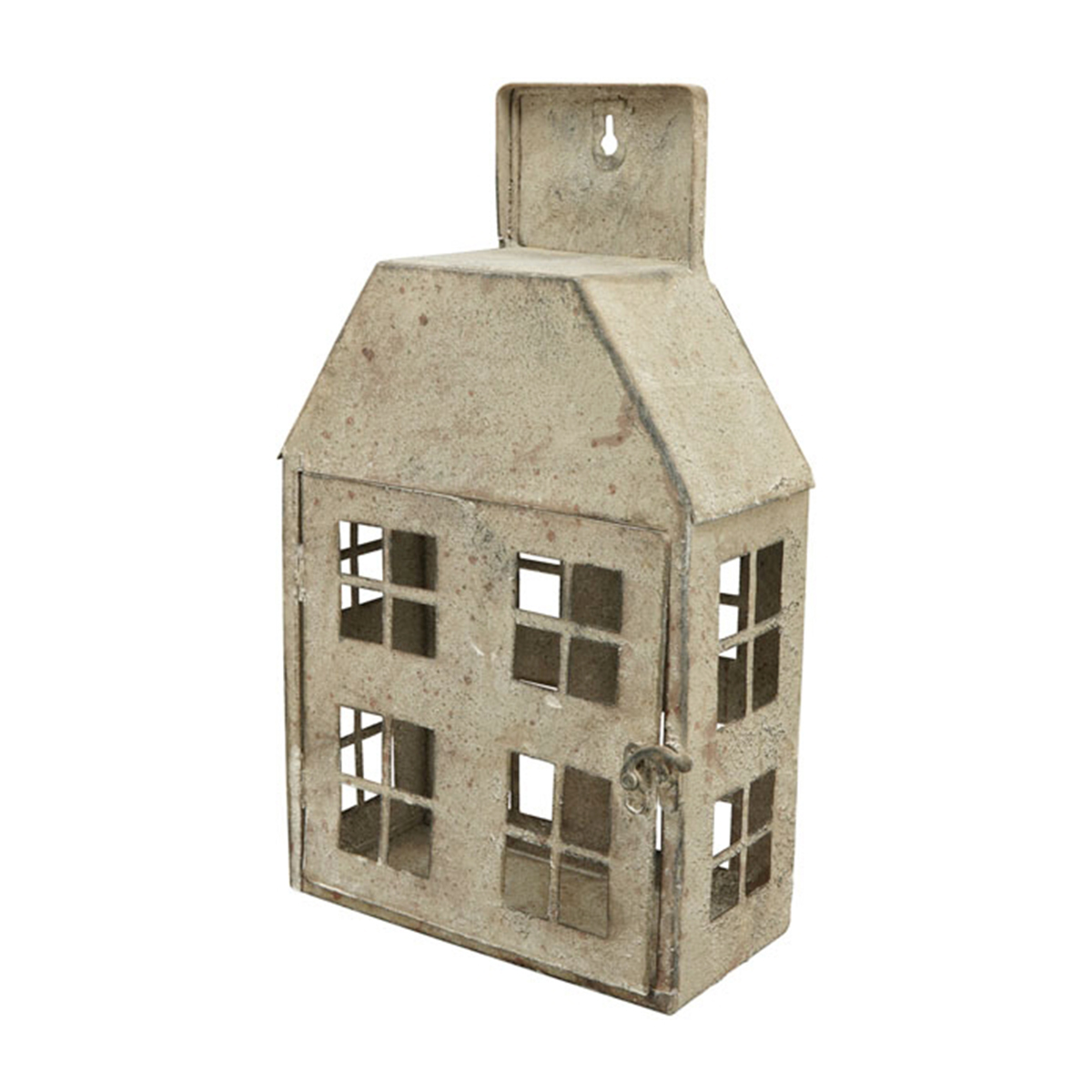 Windlicht Haus Shabby Chic grau, 20x35cm, Metallhaus im Hollandstil, zum Hängen oder Stellen